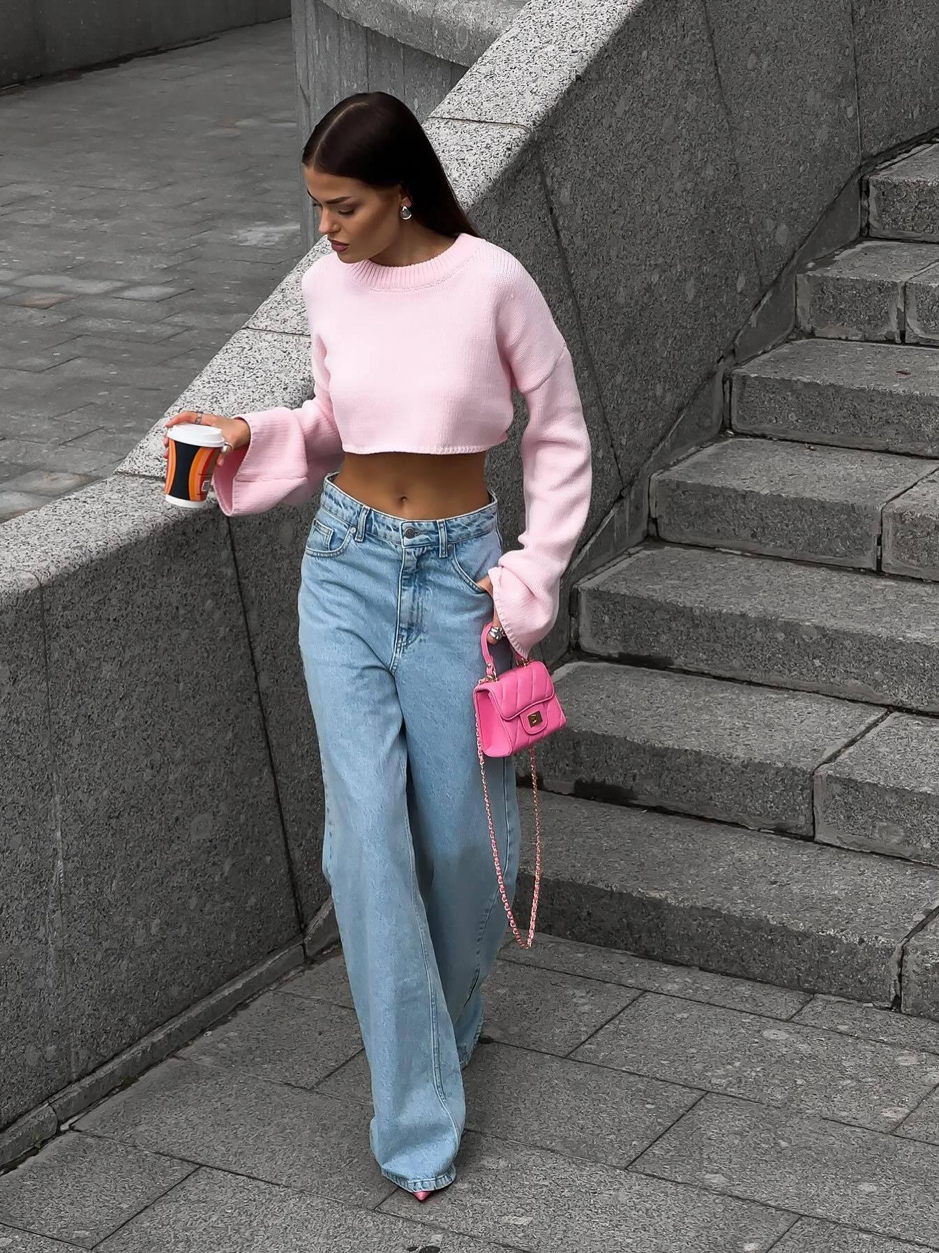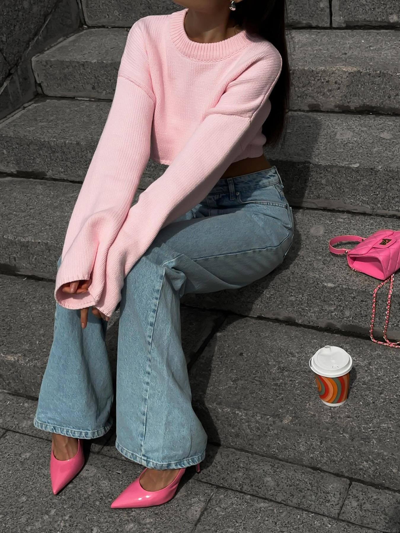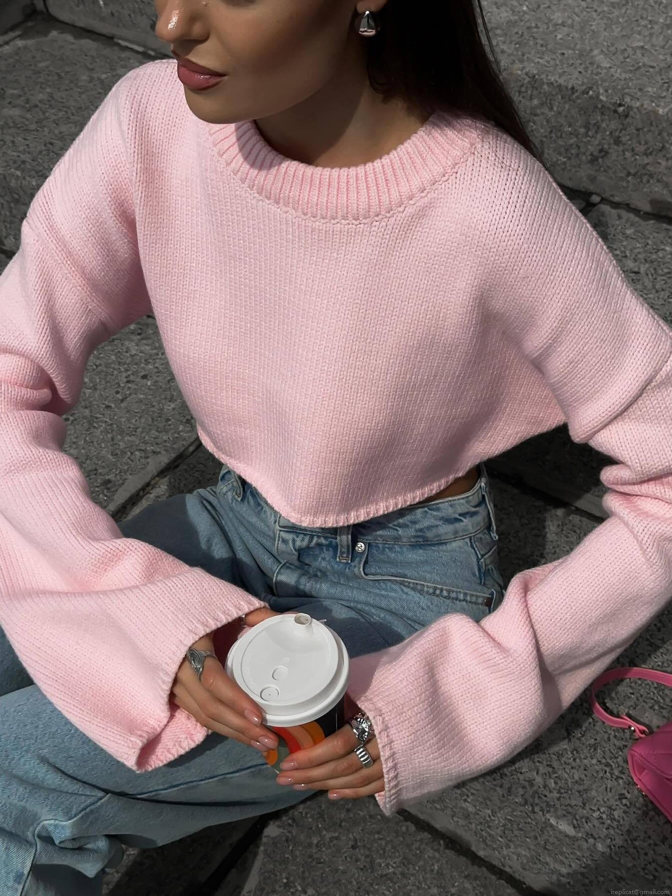 Women Sexy Crop Knit Sweater Cotton Viscose Blend Round Neck Long Sleeve Pullover Autumn Fashion Streetwear Slim Fit Knitwear Top For Women
