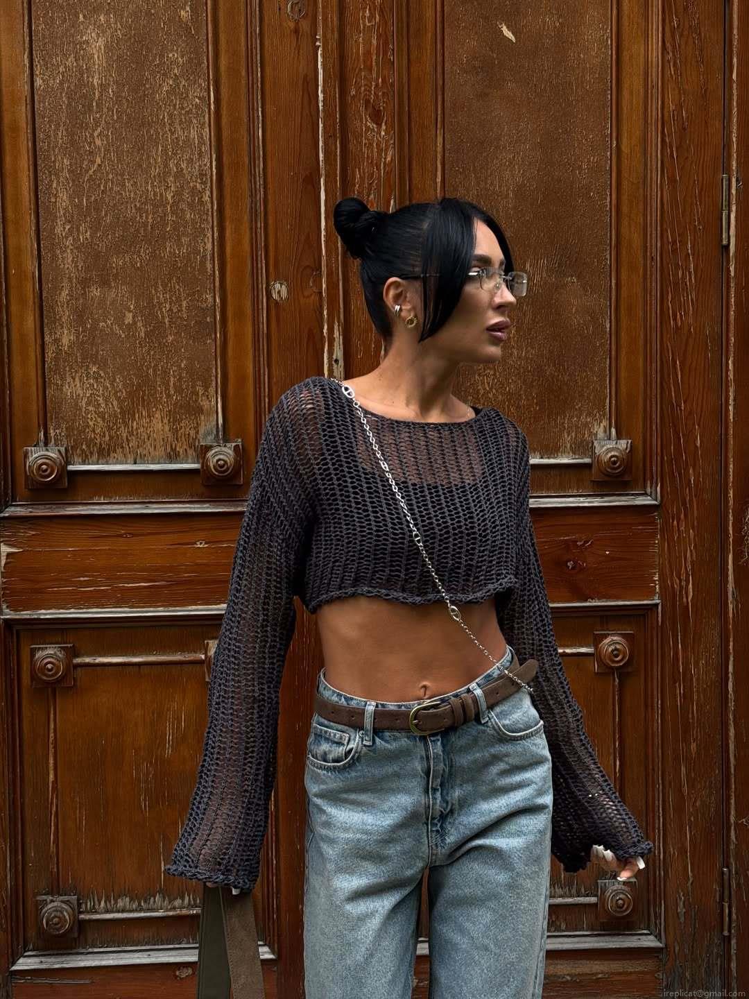 Solid Color, Hollow Out, Crochet, Navel Exposed, Perspective