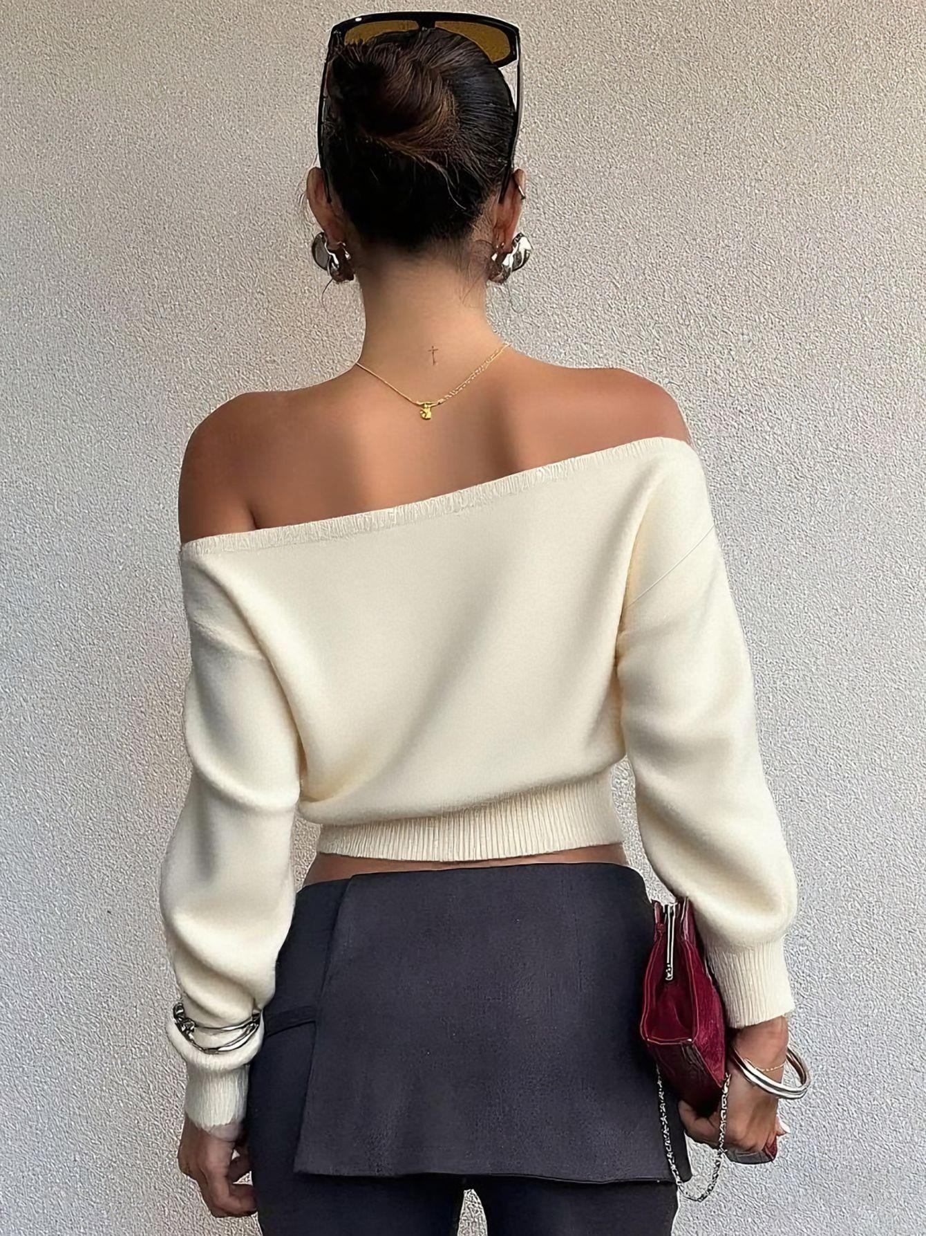 Women Sexy Off Shoulder Long Sleeve Knit Top Acrylic Rayon Polyester Blend Slim Fit Crop Sweater Streetwear Ribbed Pullover For Ladies