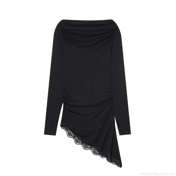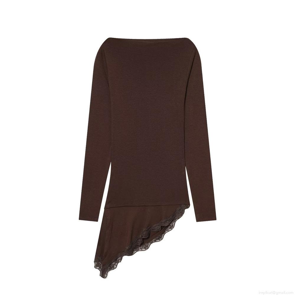 Women Sexy Off Shoulder Long Sleeve Top With Asymmetric Lace Hem Ruched Polyester Slim Fit T-Shirt Blouse For Women Chic Streetwear