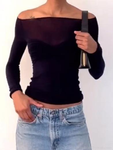 Women's Sexy Off-Shoulder Mesh Pleated T-Shirt Asymmetrical Long...