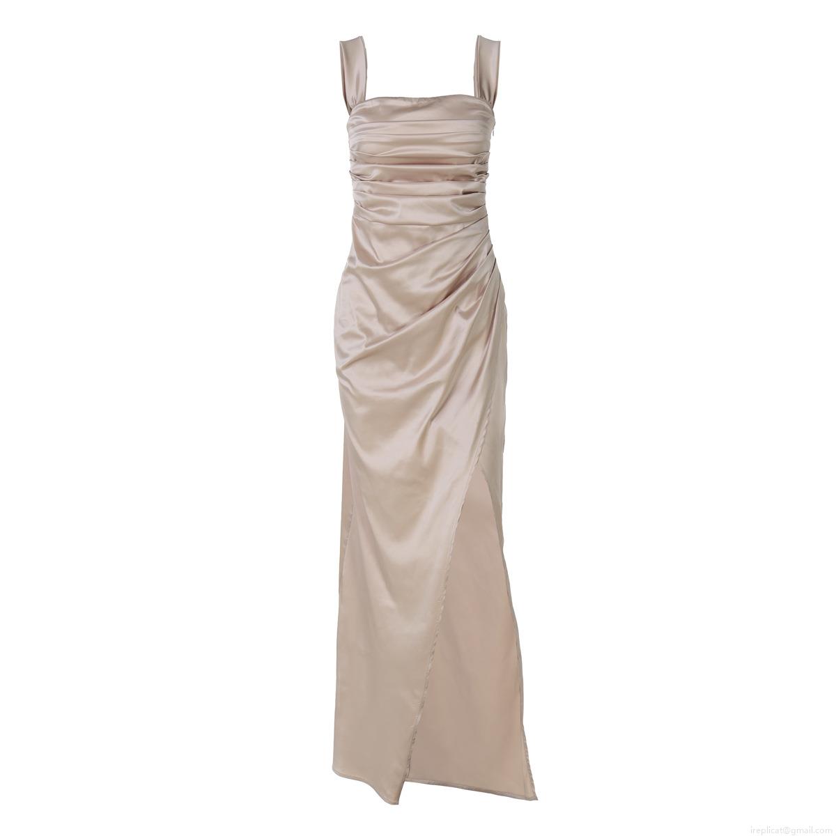 Solid Color, Pleats, Straps, Backless, High Fork