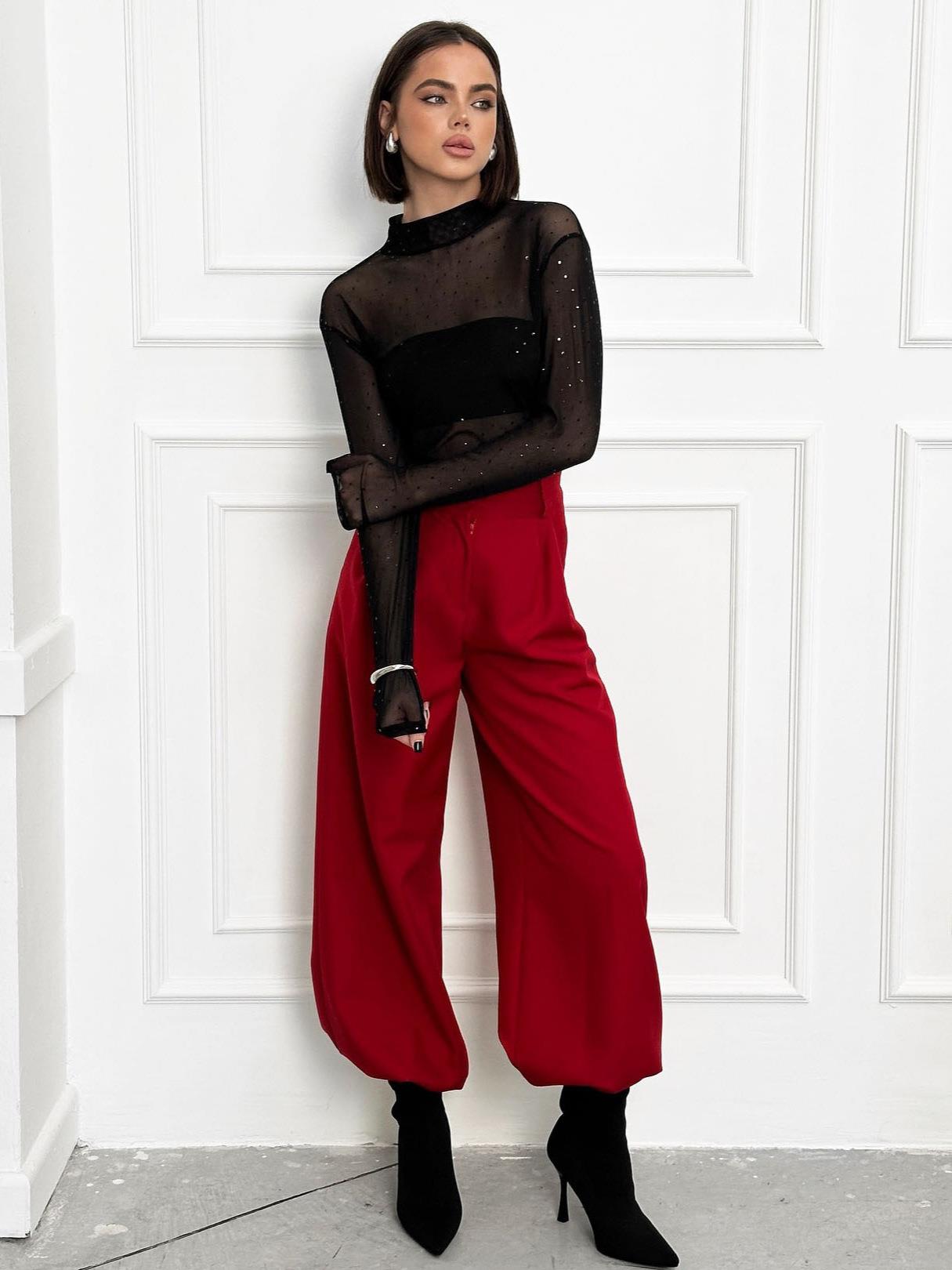 Solid Color, Hot Rhinestones, Mesh, Perspective