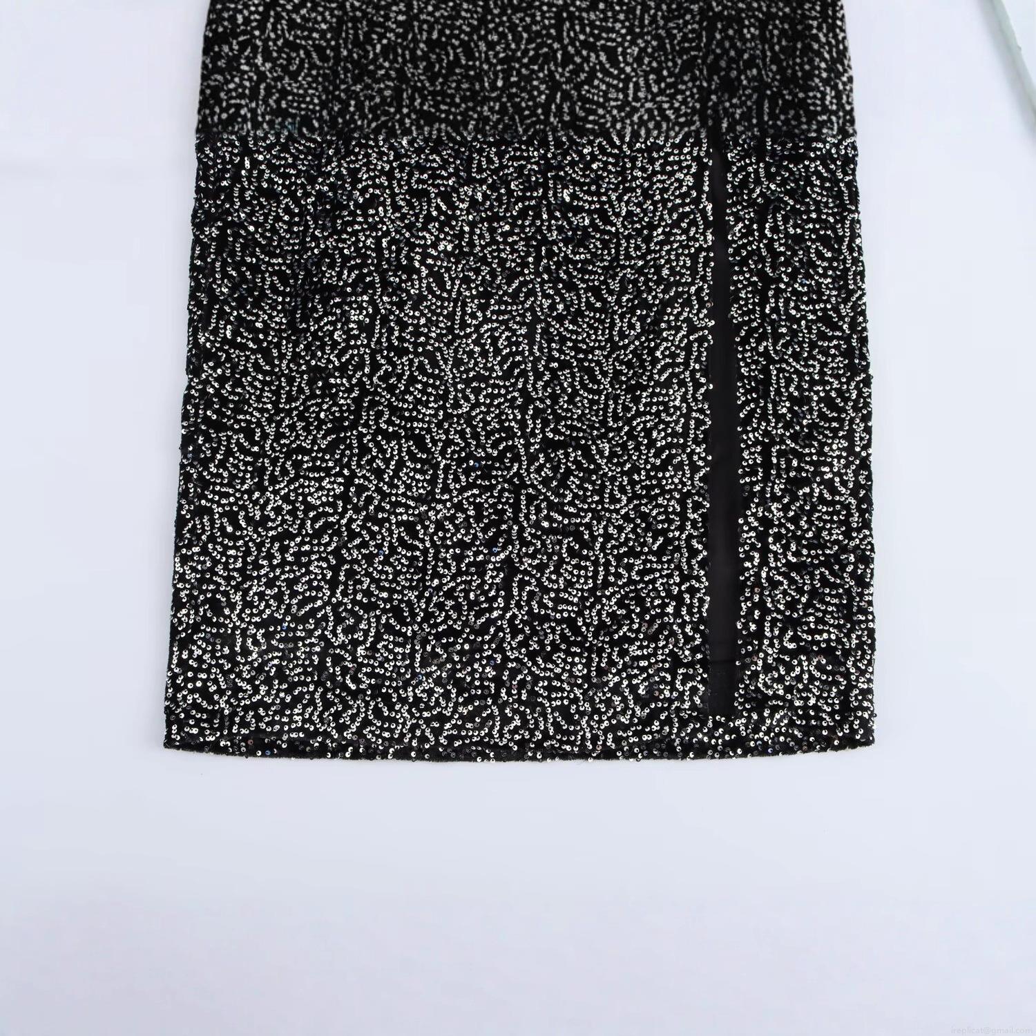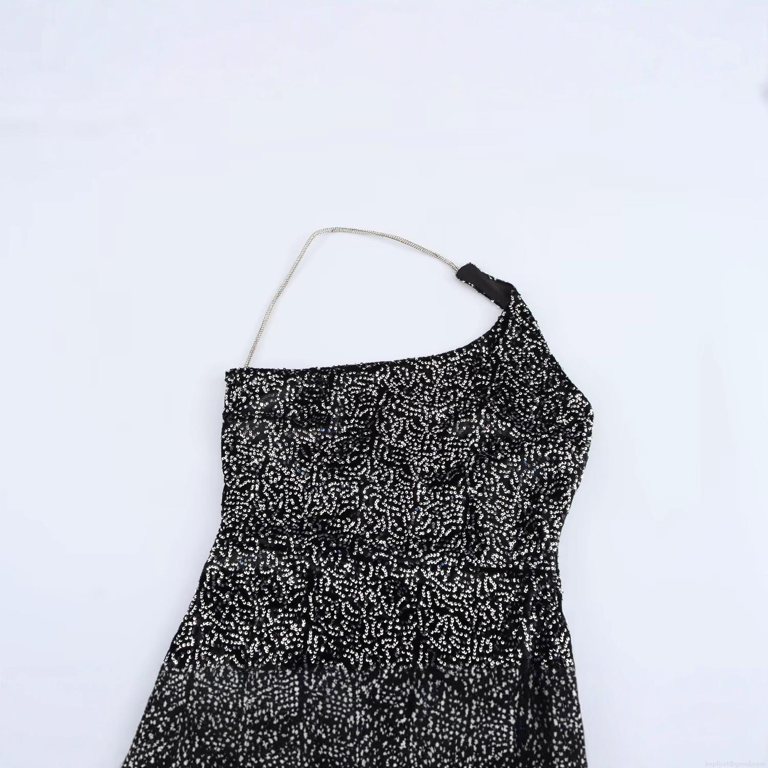 Solid Color, Sequin, Metal Chain, Backless, Side Fork, Sequin Decoration, Asymmetrical Design