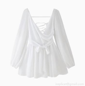 Women Sexy V Neck Cold Shoulder Split Long Sleeve Chiffon Dress Elegant Tie Waist Solid Color Mini Dress For Party Evening Vacation Clubwear