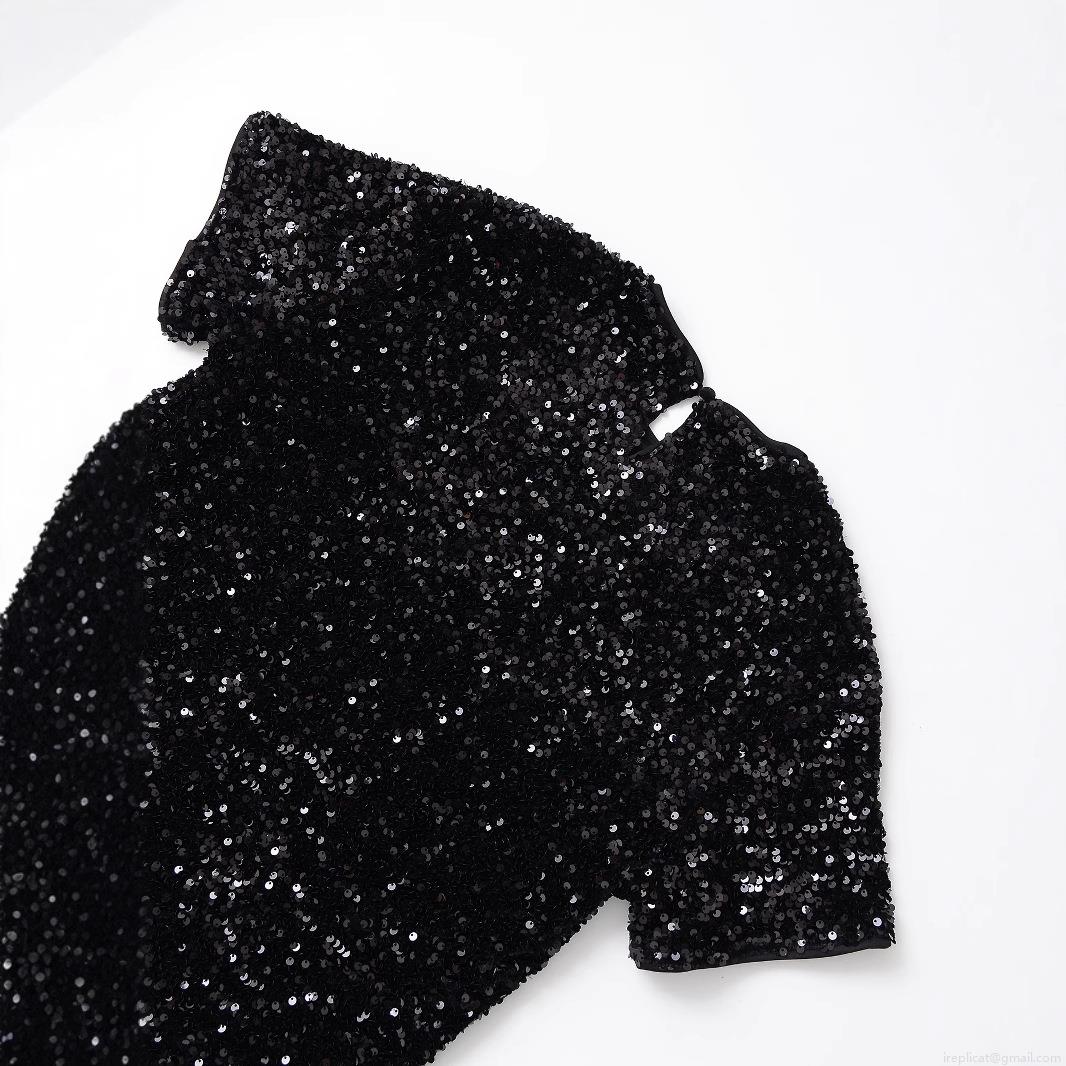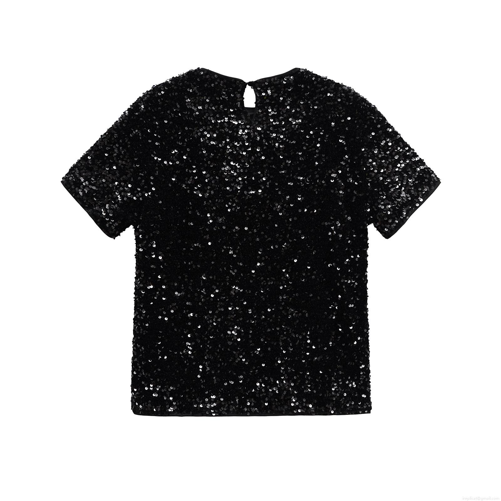 Women Shiny Sequin T-Shirt Sparkly Short Sleeve Crew Neck Loose Fit Party Clubwear Top Blouse Polyester Sparkling Casual Streetwear Tee For Ladies