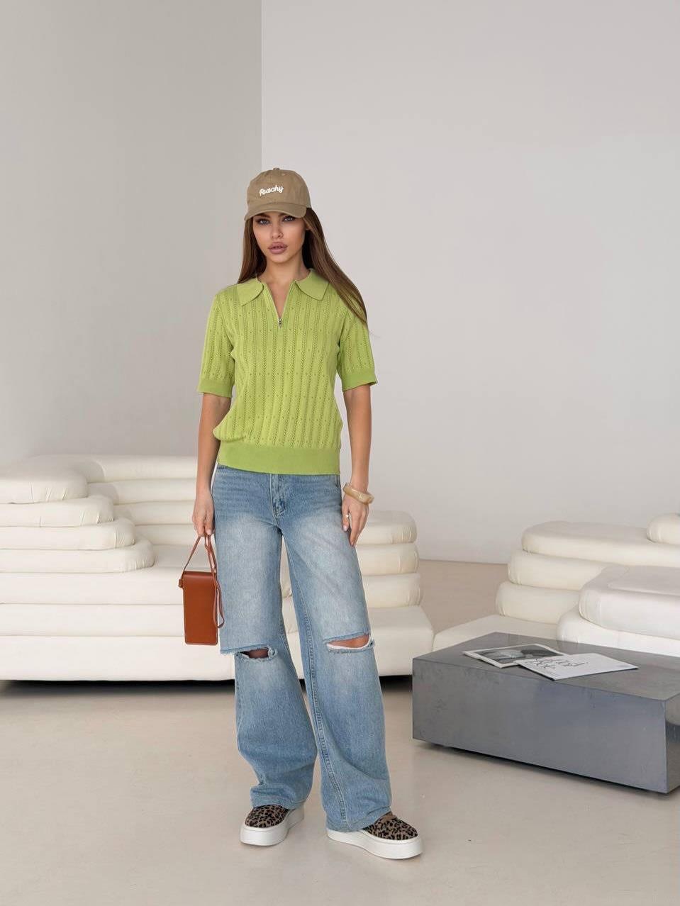 Women Short Sleeve Knit Polo Shirt Half Zipper Hollow Out Jacquard Top Summer Casual Commuter Sexy Style Cotton Blend T-Shirt for Women Ladies