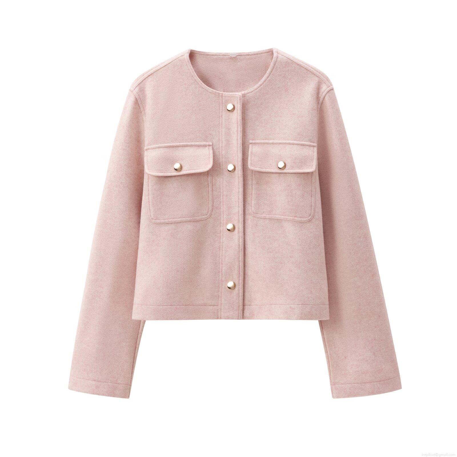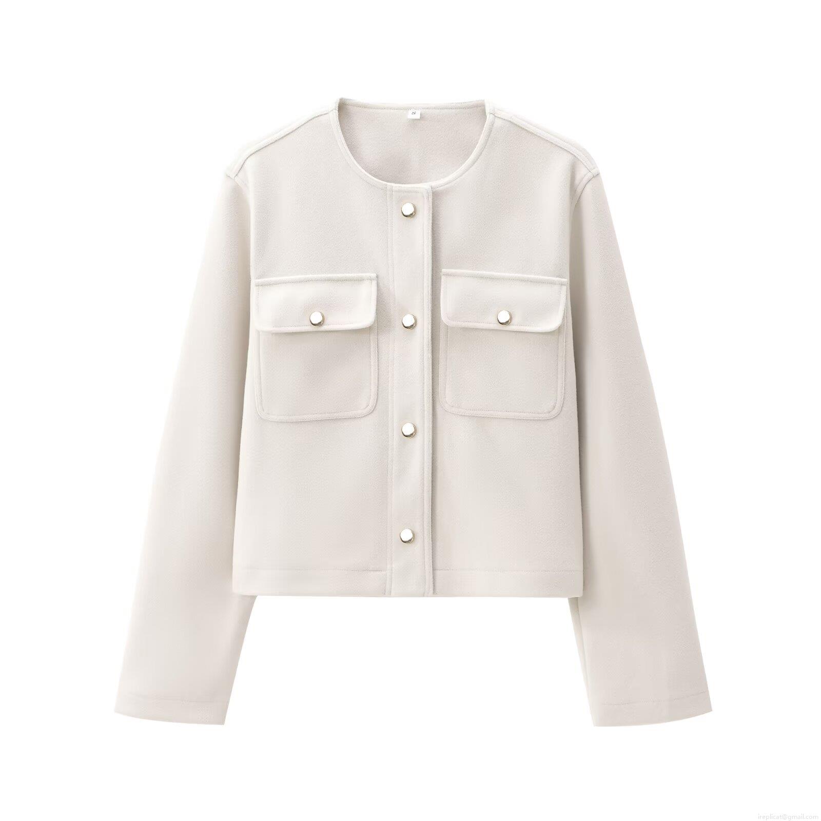 Women's Fashion Short Jacket Polyester Solid Color Lapel Collar...