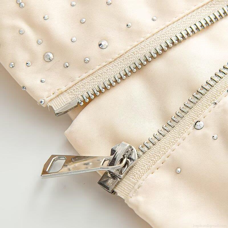 Solid Color, Metal Zipper, Rhinestone Embellishment, Starry Sky Rhinestones, Elastic Cuffs
