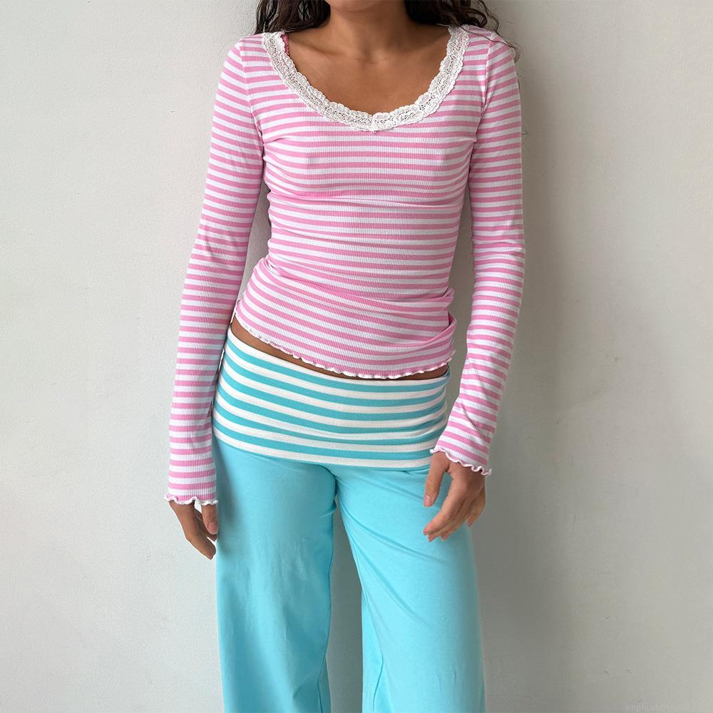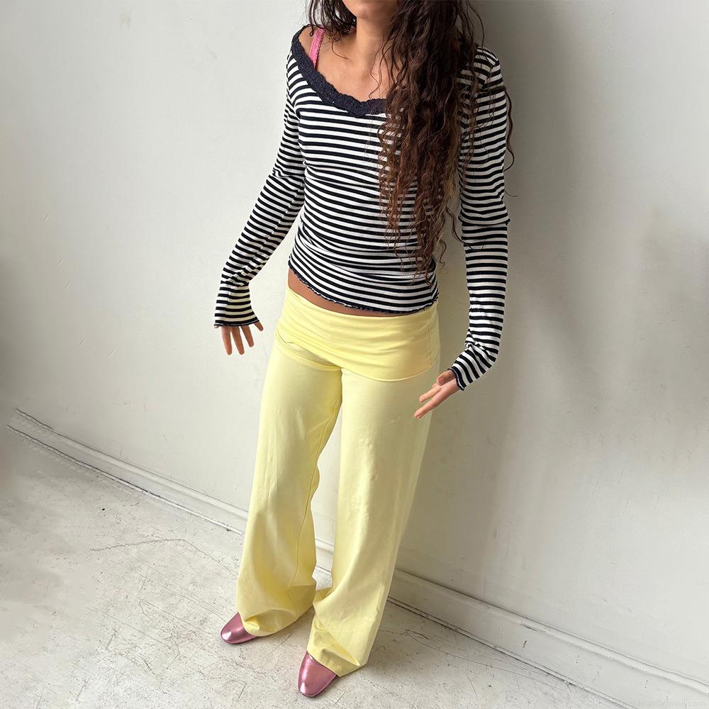 Women Striped Wide Leg Pants Milk Silk Polyester Loose Casual High Waist Trousers Daily Home Loungewear Streetwear Fashion Female Bottoms