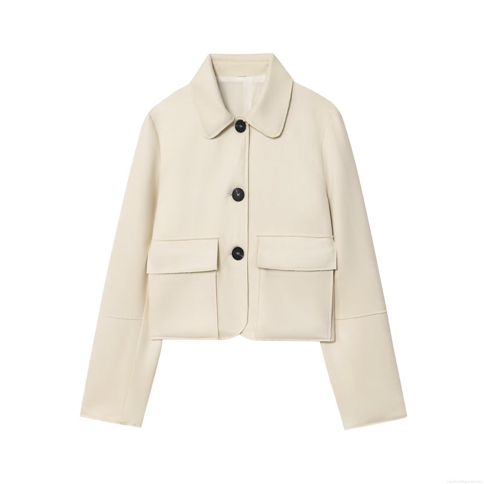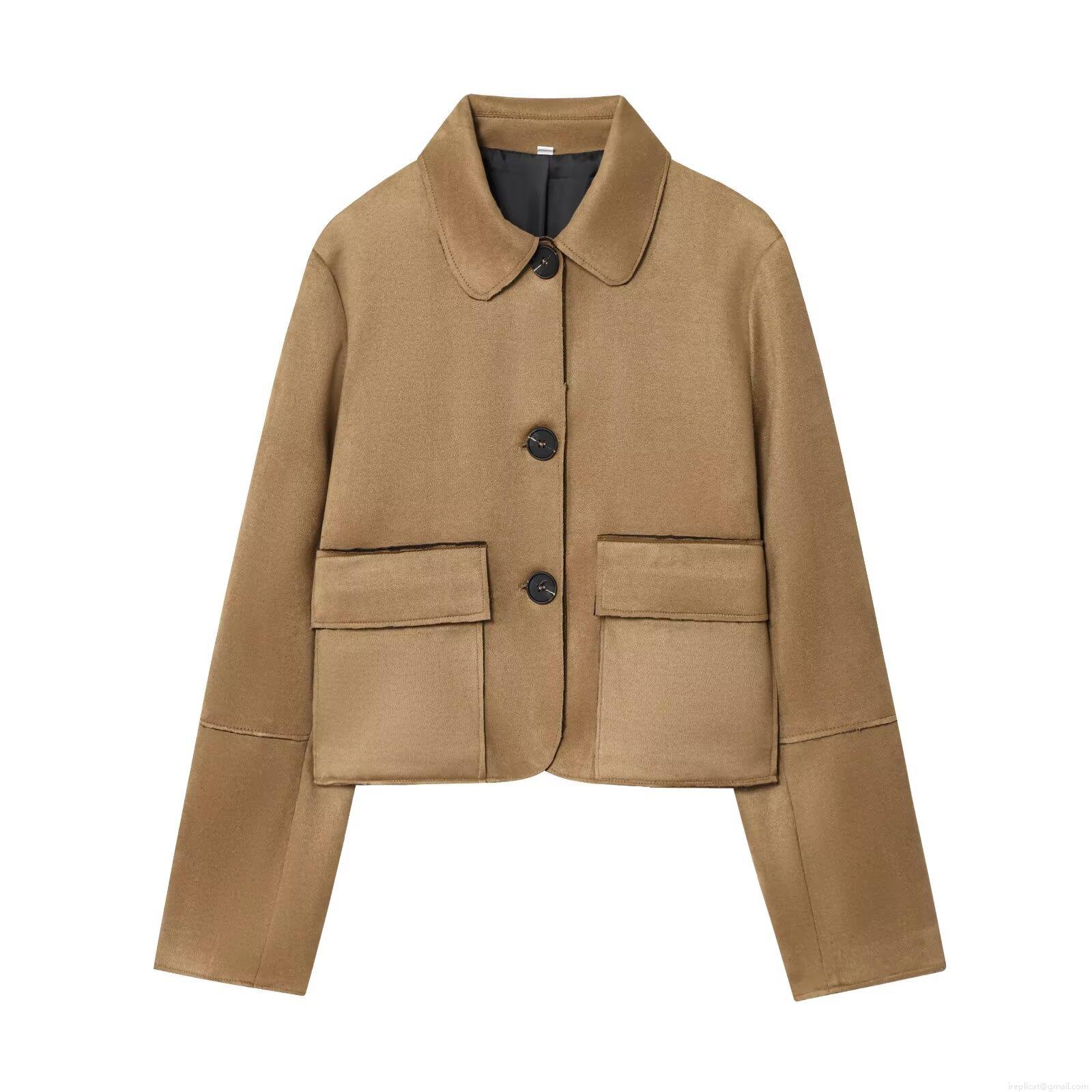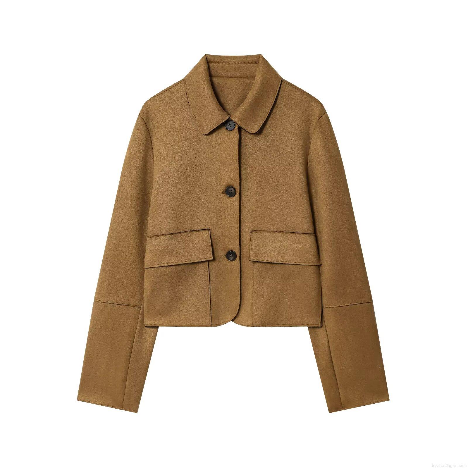 Women Suede Texture Lapel Long Sleeve Short Jacket Single Breasted Solid Color Coat With Pockets Fashion Streetwear Outerwear For Autumn Winter