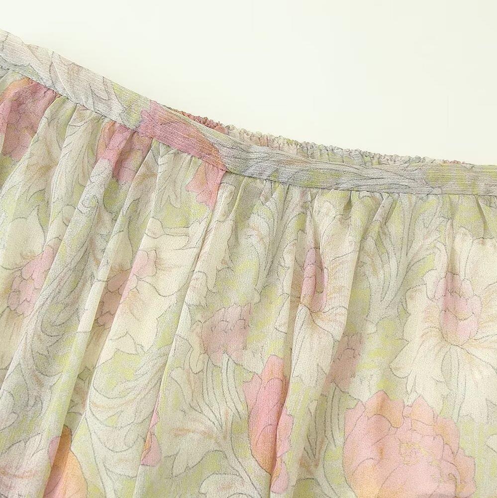 Women Summer Casual Floral Printed Chiffon Lantern Pants Loose Elastic Waist Boho Harem Trousers For Vacation Lightweight Breathable Pants