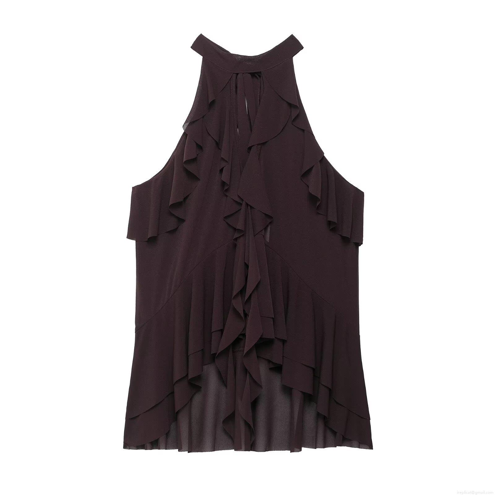 Women Summer Halter Neck Polyester Chiffon Top Sleeveless Layered Ruffle Decoration Back Bow Tie T-Shirt Elegant Streetwear Casual Sexy Blouse For Women