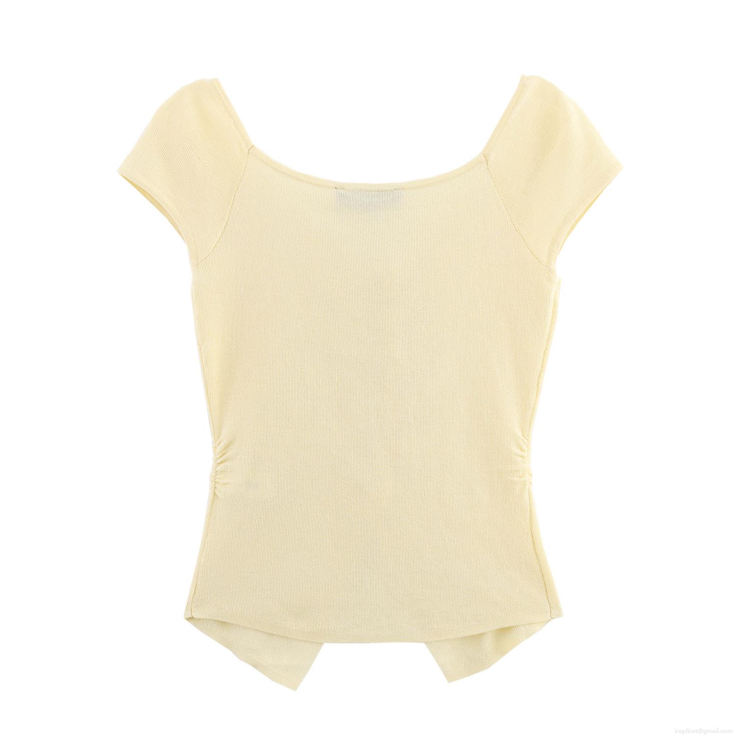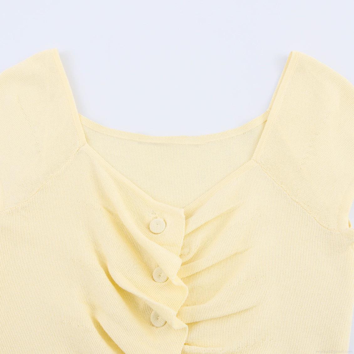 Women Sweet Ruched Knit T-Shirt Slim Fit U-Neck Button Decor Ribbed Short Sleeve Top Elegant Daily Casual Polyester Spandex Soft Breathable Tee