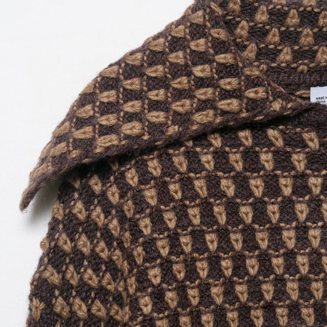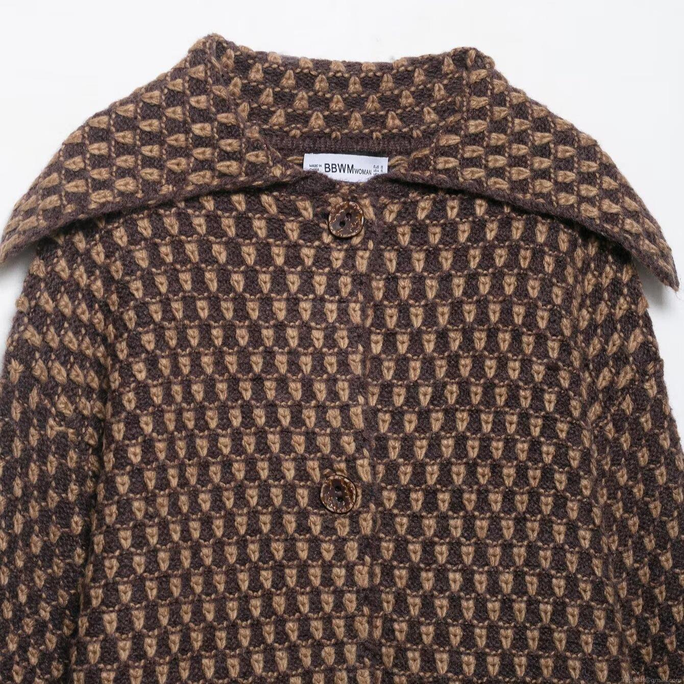 Checkered Pattern, Geometric Patterns, Button Decoration, Large Lapel, Contrasting Color Jacquard