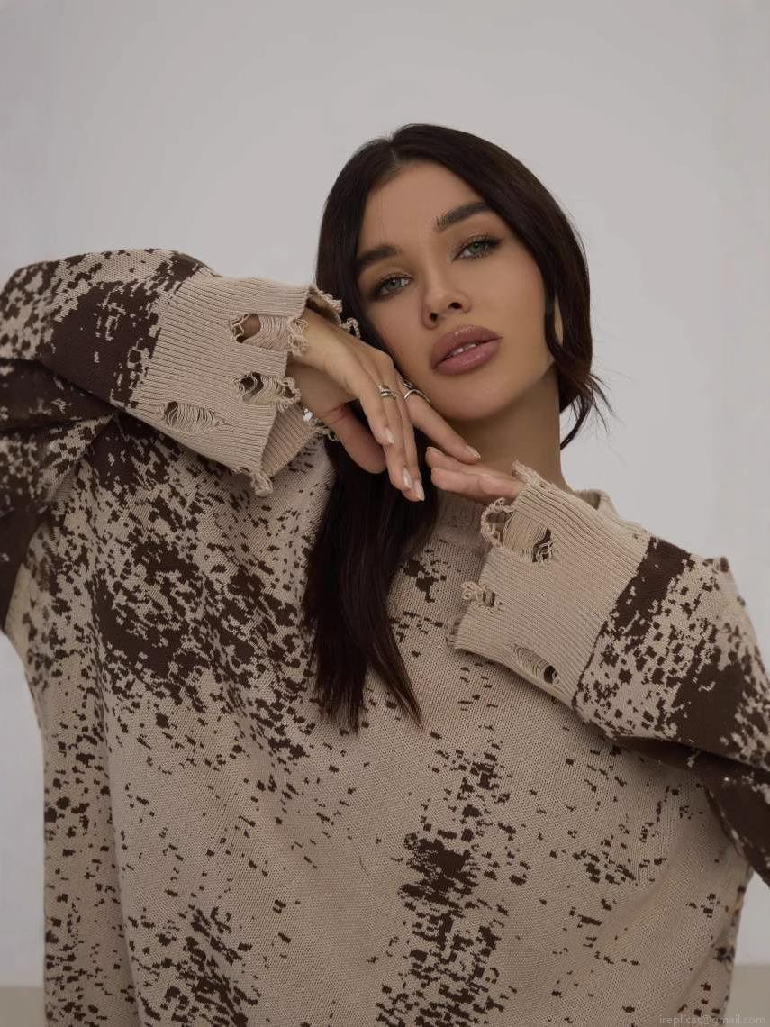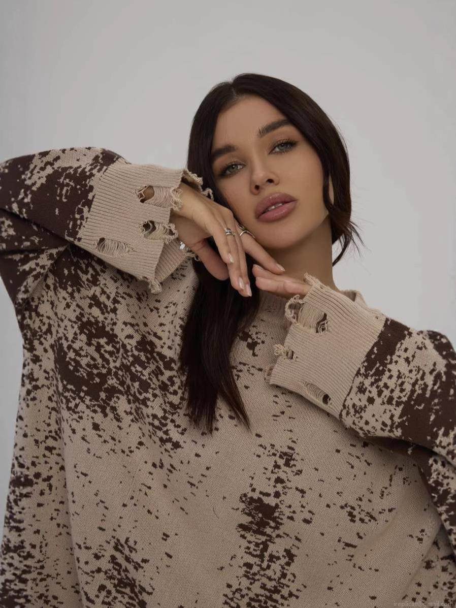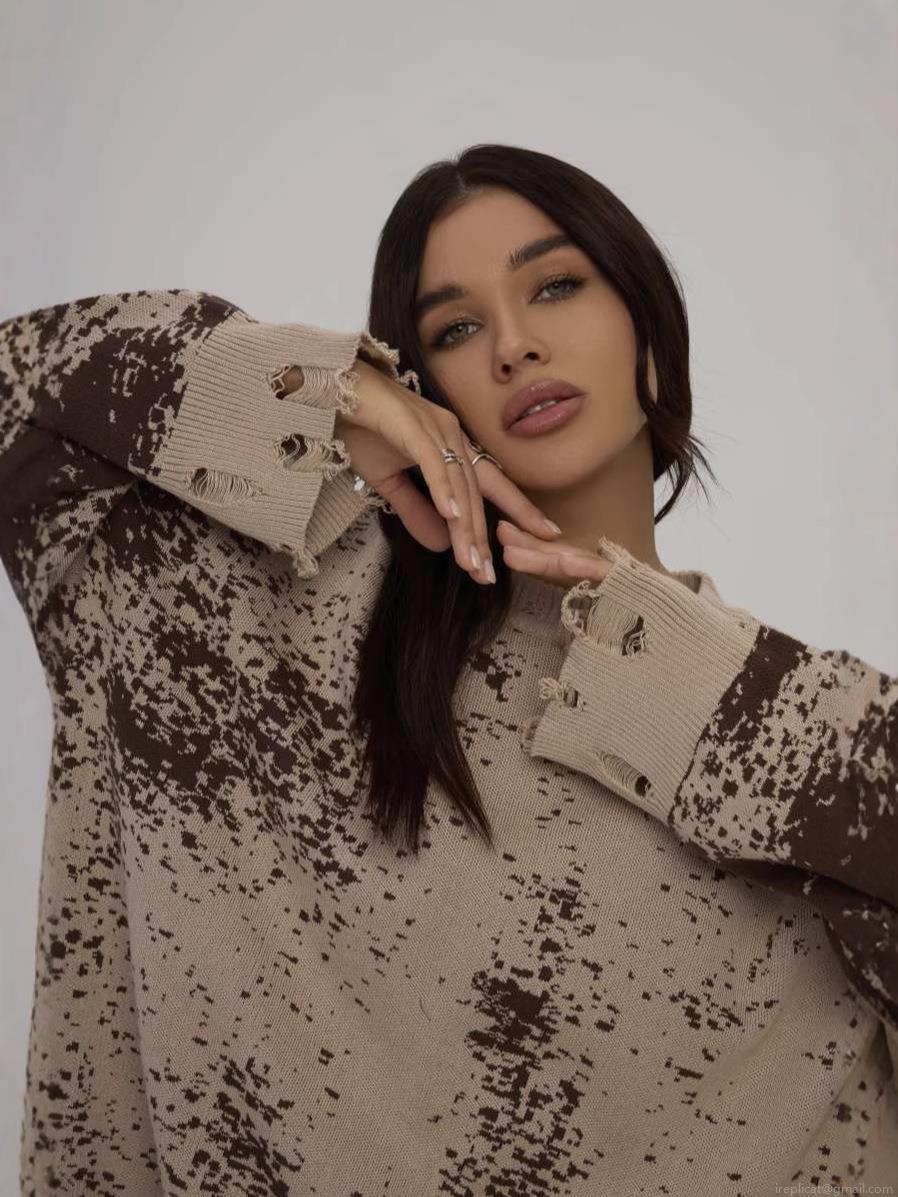 Women Vintage Oversized Distressed Knit Sweater Cotton Blend Round Neck Long Sleeve Pullover Streetwear Retro Graffiti Splash Ink Warm Jumper Top