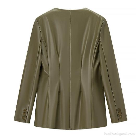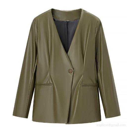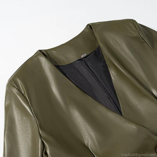 Women Vintage PU Leather Blazer Jacket V-Neck Single Breasted Long Sleeve Faux Leather Outwear Distressed Solid Color Coat With Polyester Lining For Women Streetwear Office