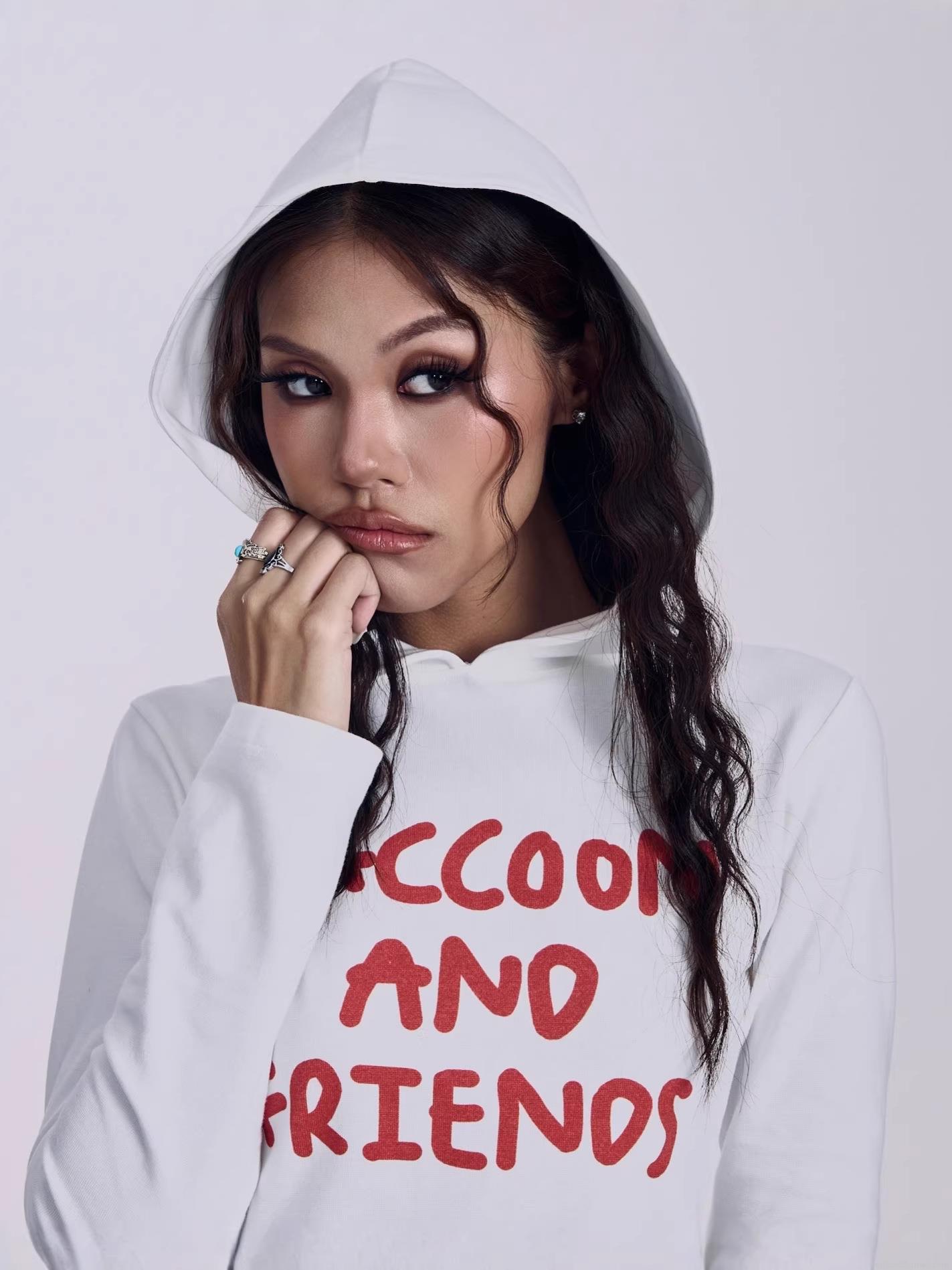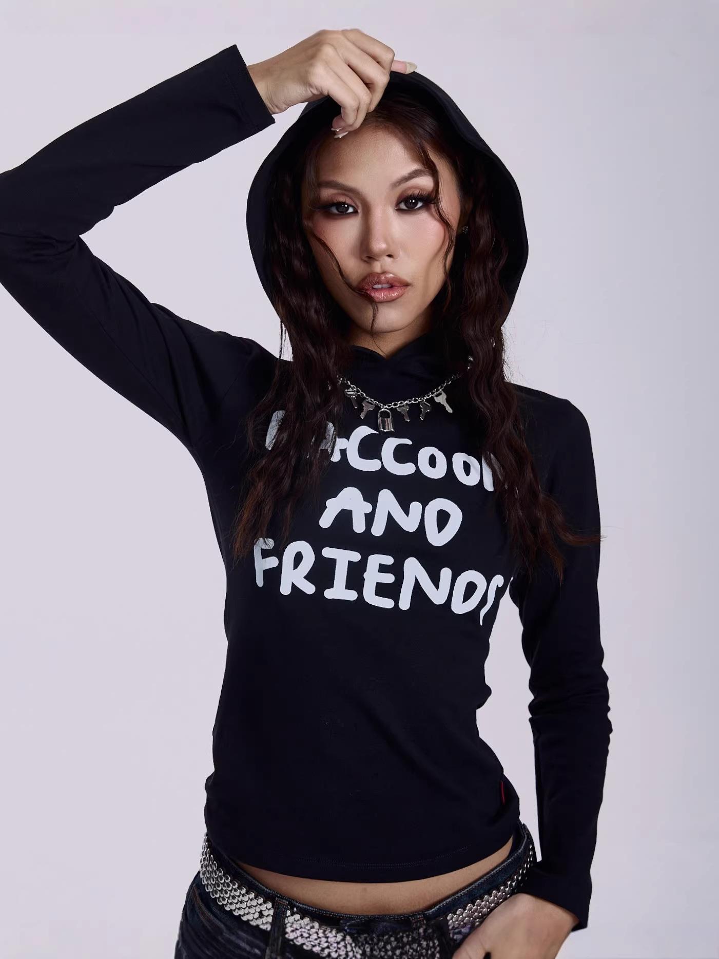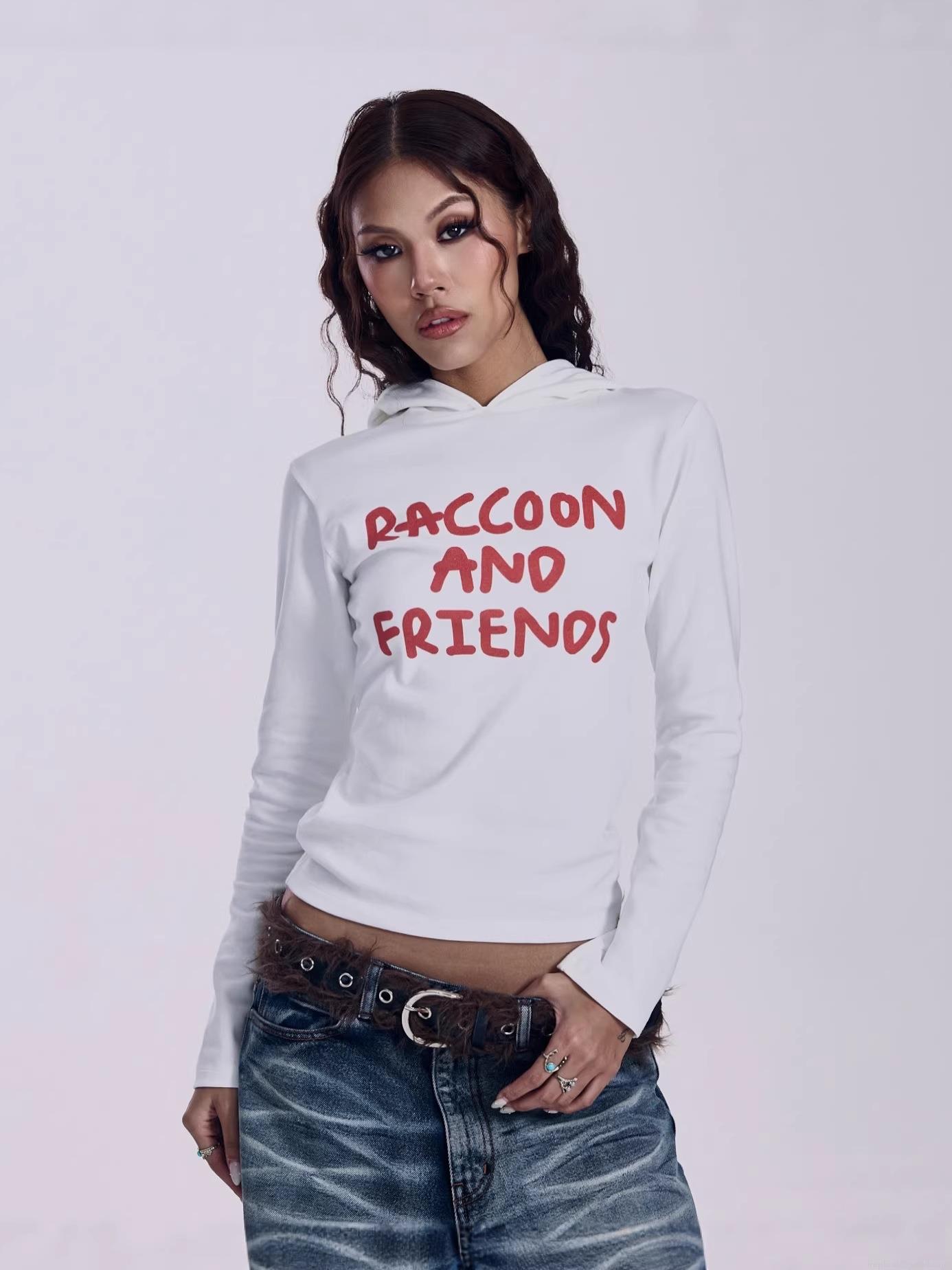 Letters, Letter Print, Hooded Design, Y2k Style, Slim Fit, RACCOONS AND FRIENDS