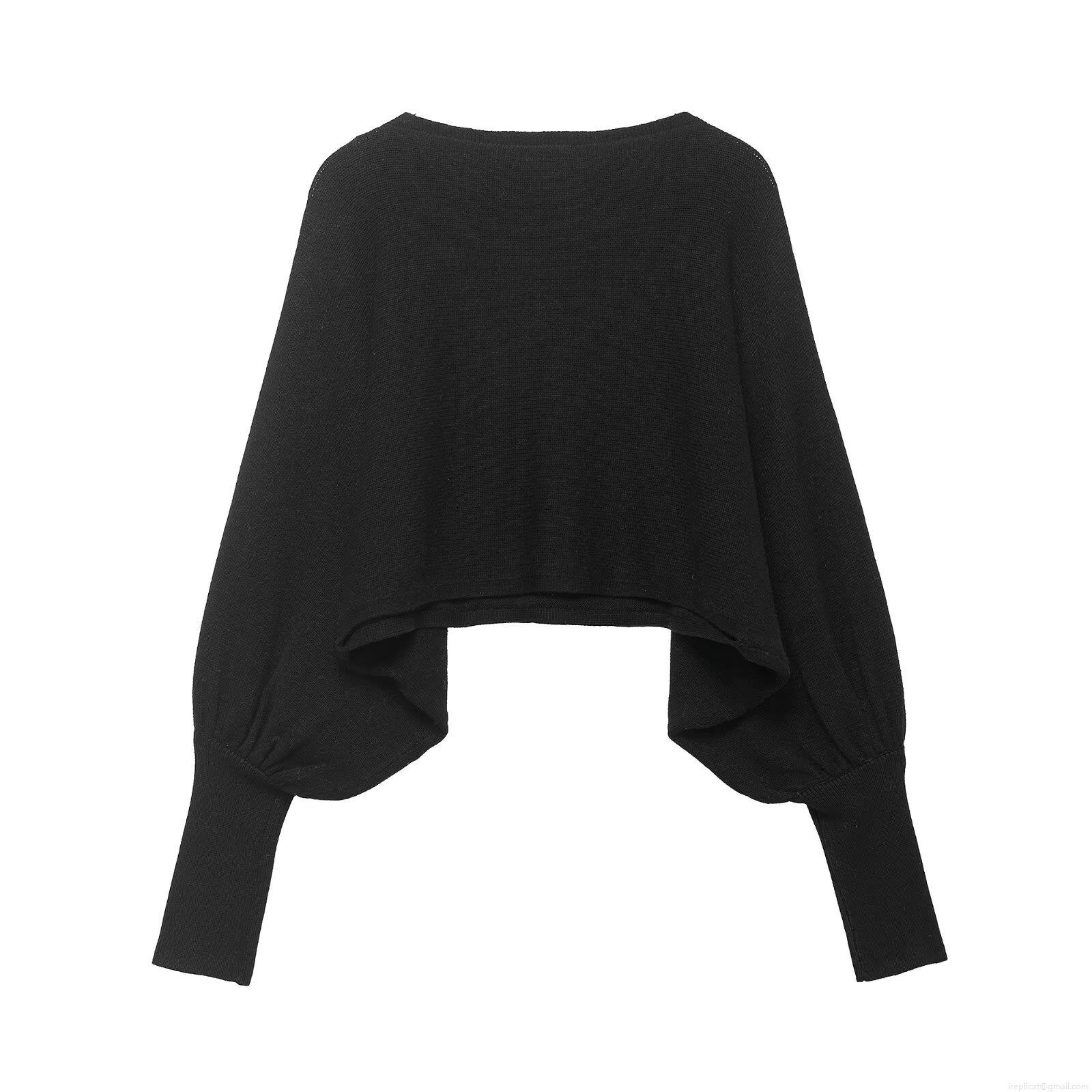 Women Western Style Solid Color Short Knit Sweater Pullover With Round Neck And Lantern Sleeve 100% Polyester Casual Loose Fit Winter Autumn Top