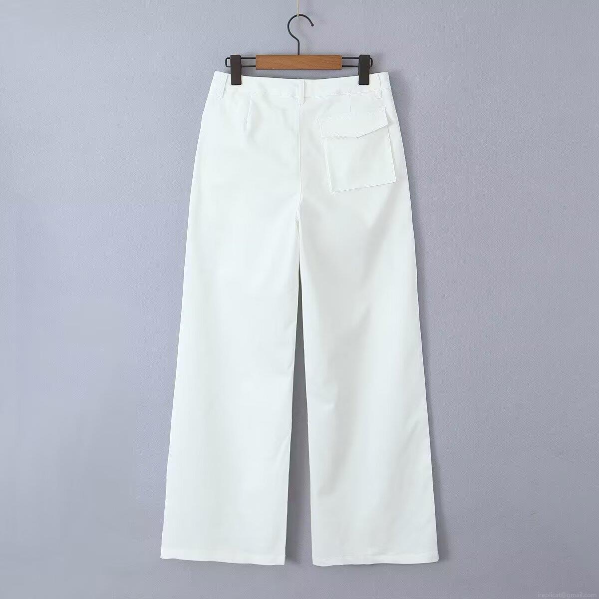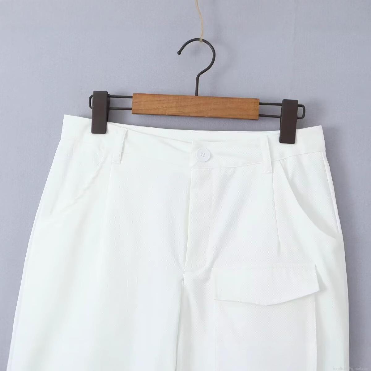Women White Cargo Pants Low Waist Wide Leg Multi Pocket Casual Trousers Streetwear Fashion Cotton Blend Straight Leg Bottoms