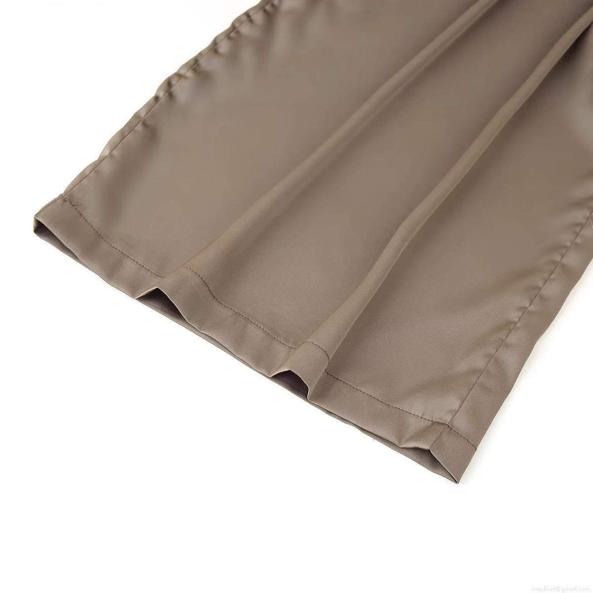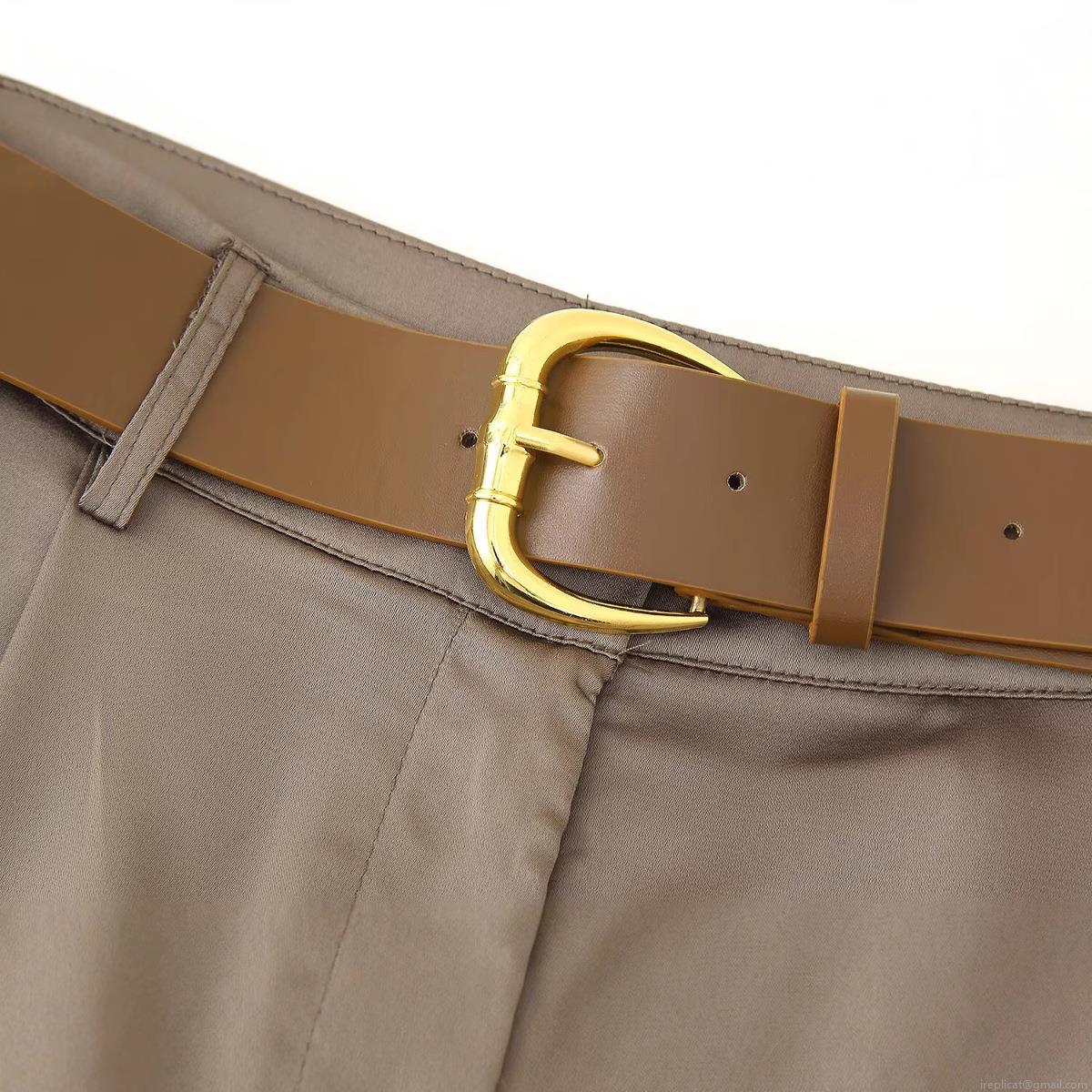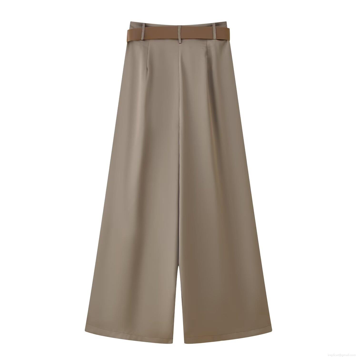 Women Wide Leg Casual Pants With Belt Satin Texture High Waist Pleated Straight Trousers For Office Daily Lady Streetwear Elegant Khaki Long Pants