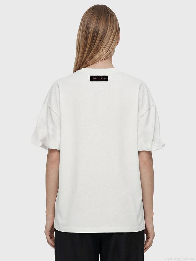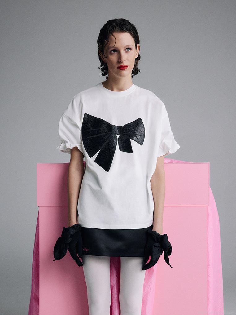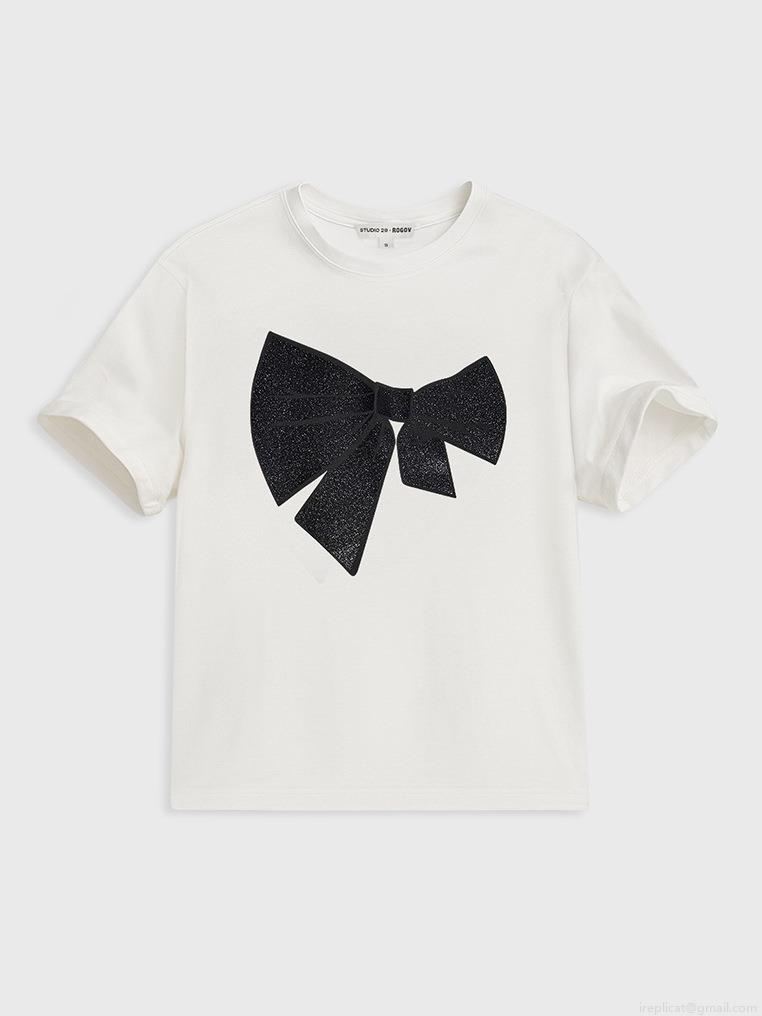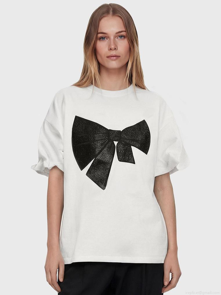 Women's 95% Cotton T-Shirt With Large Black Bow Print American Simple Loose Fit Drop Shoulder Short Sleeve Crew Neck Streetwear Top For Summer