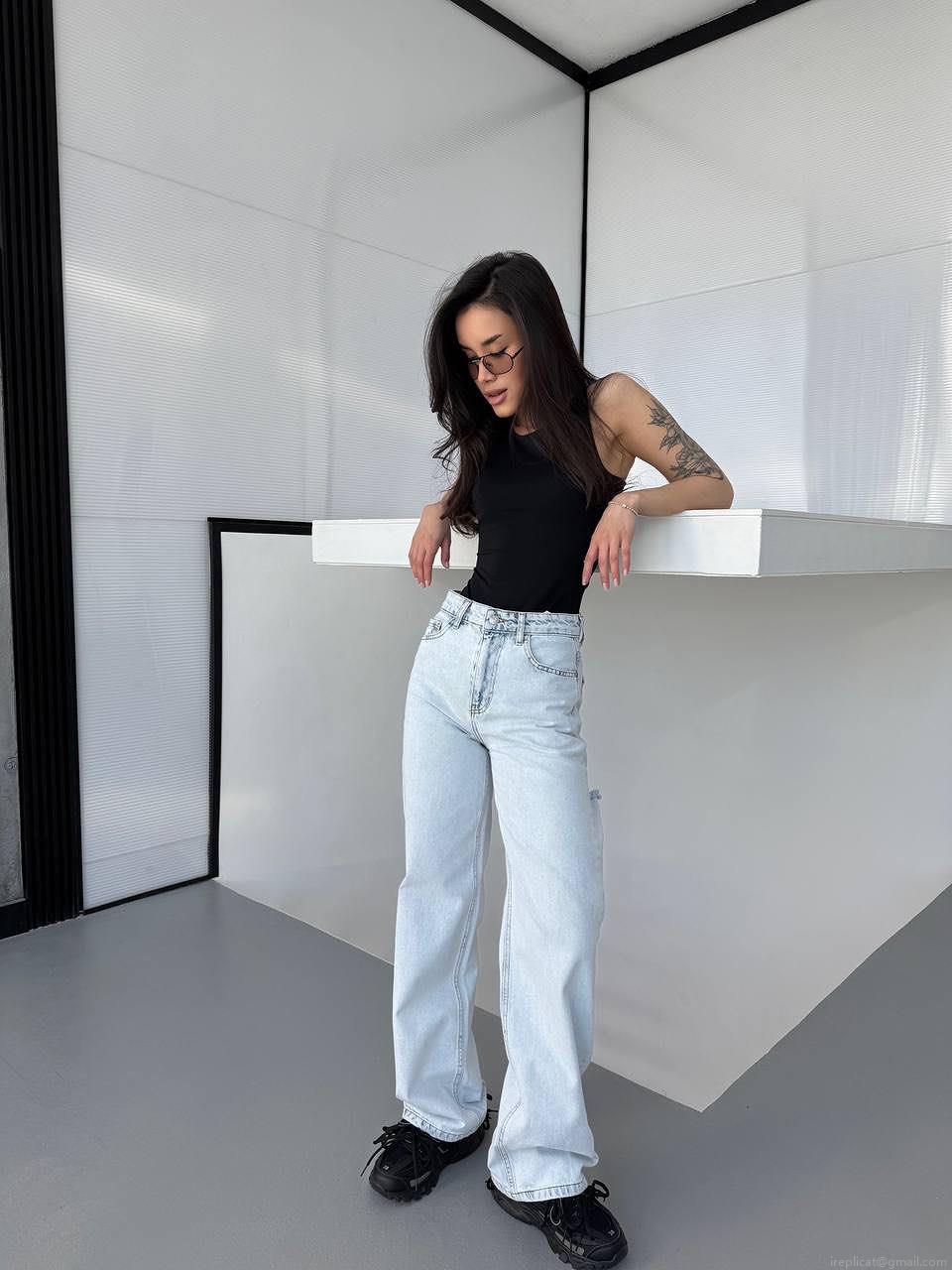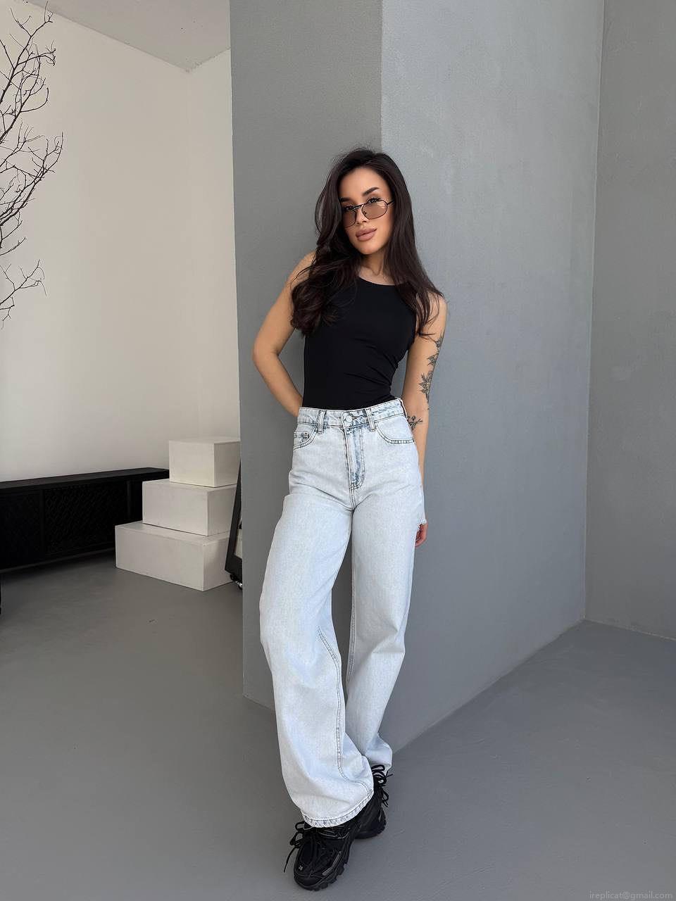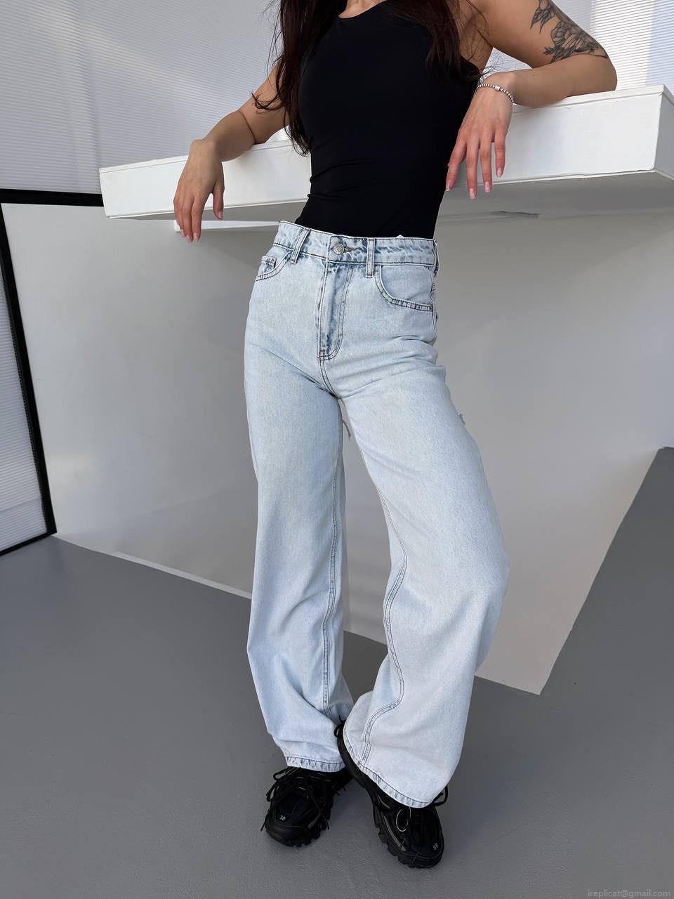 Women's American Classic Washed Distressed High Waist Wide Leg Jeans 100% Cotton Denim Trousers Sexy Hot Girl Streetwear Straight Drape Long Pants