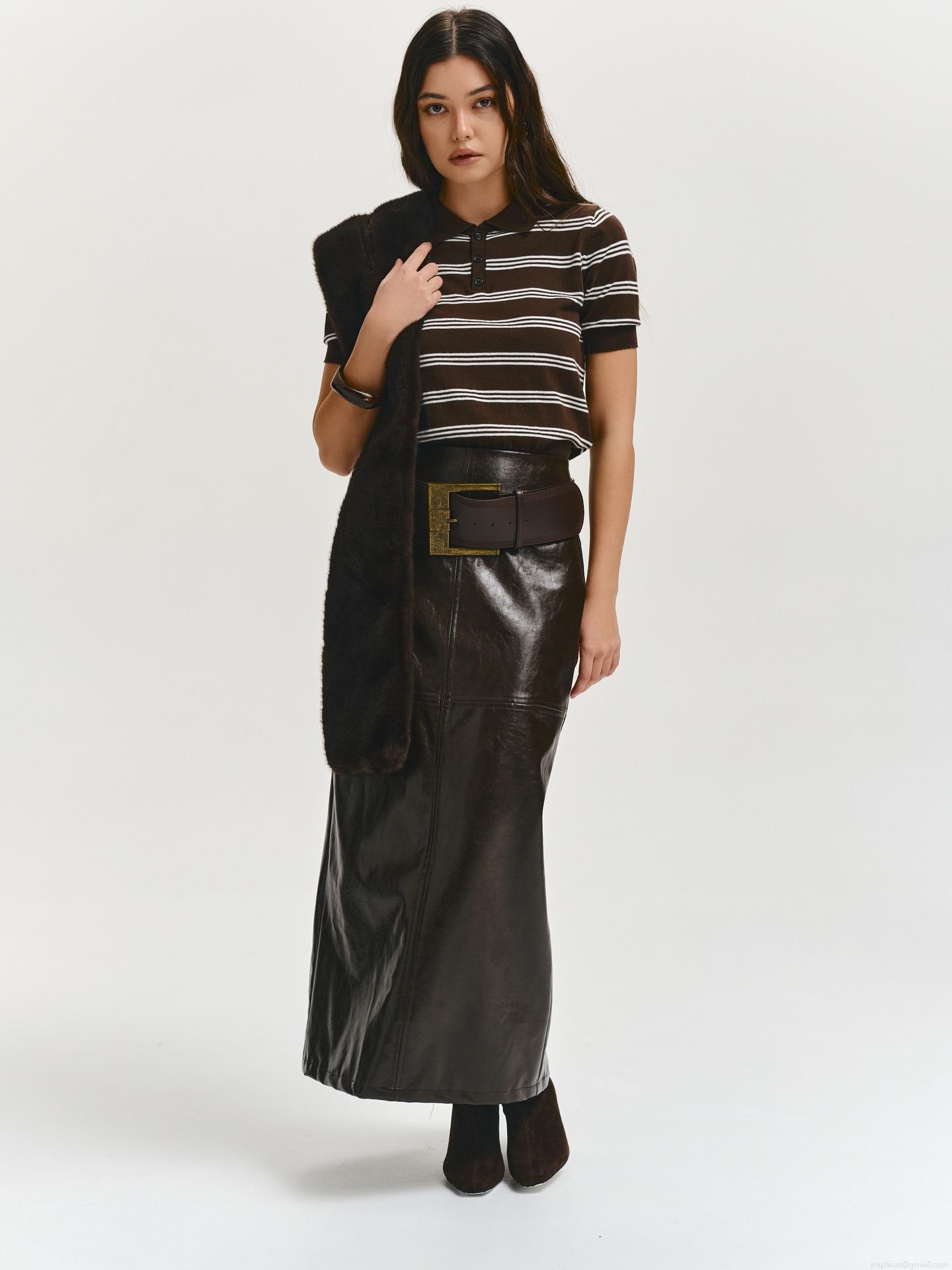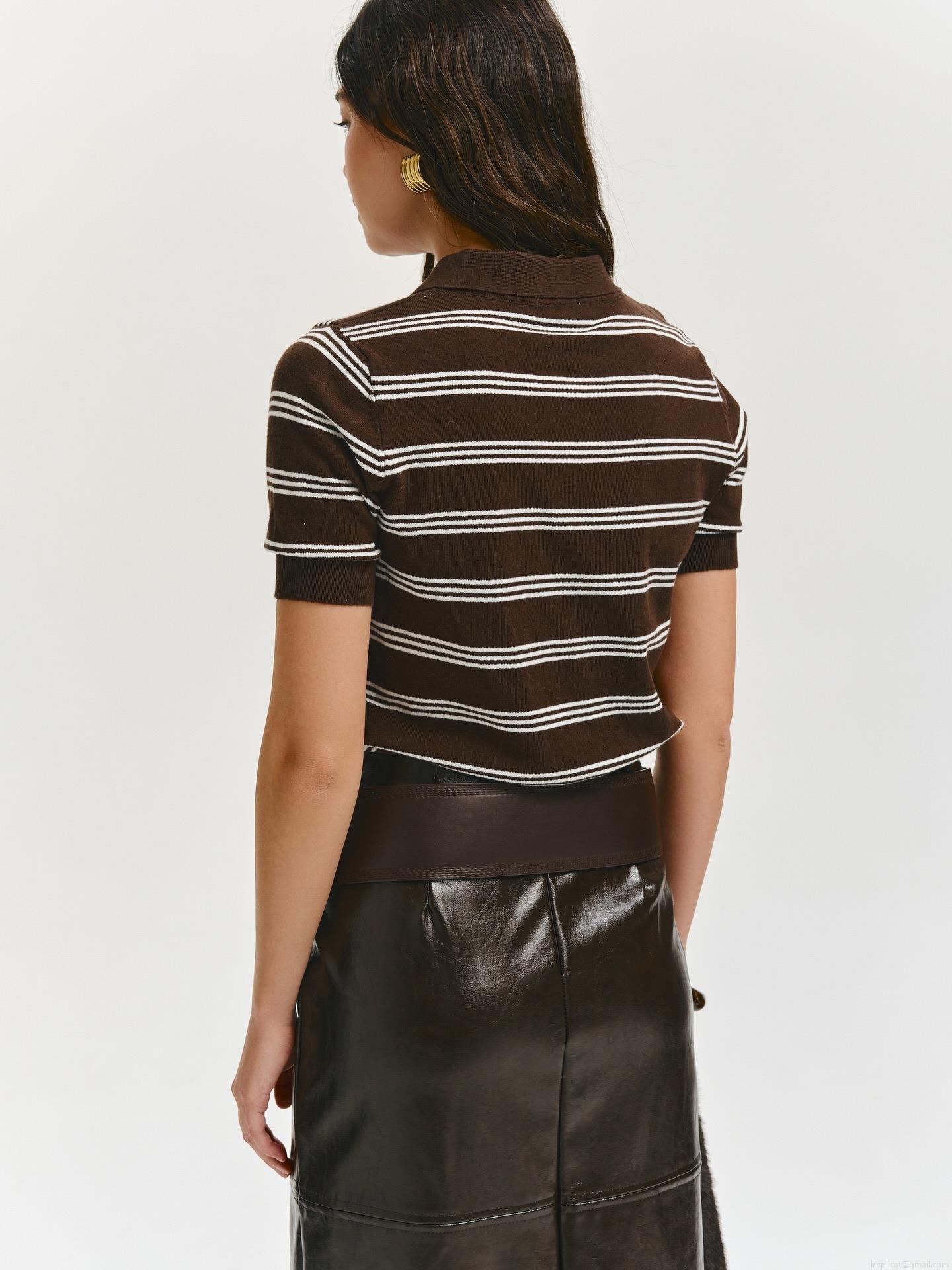 Women's American Vintage Striped Knit Polo Shirt Drop Shoulder Short Sleeve Lapel Button Tee Cotton Blend Summer Casual Top