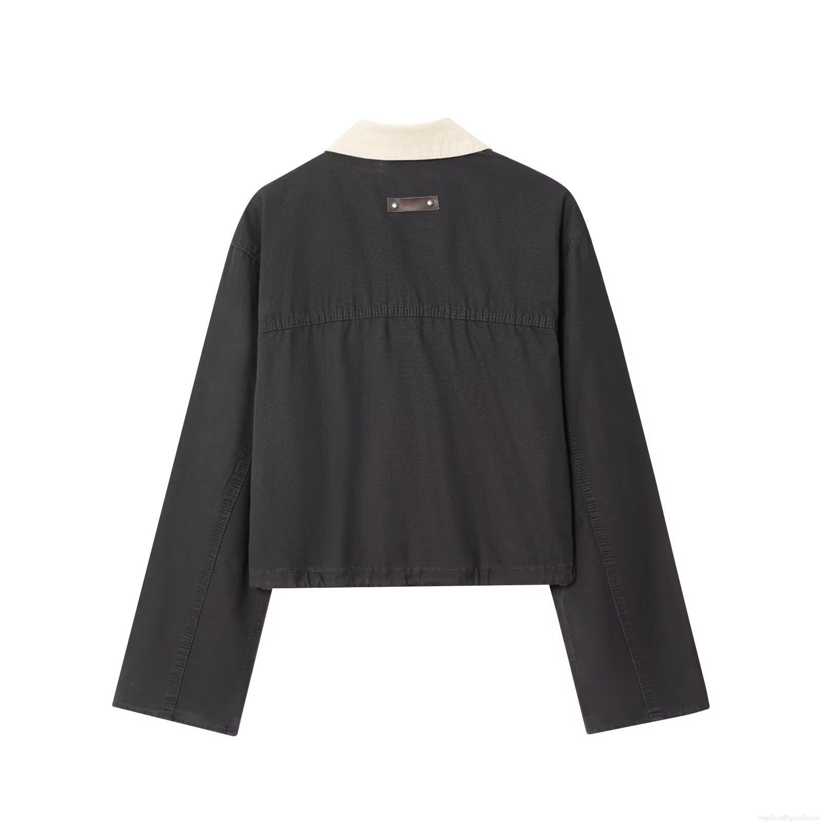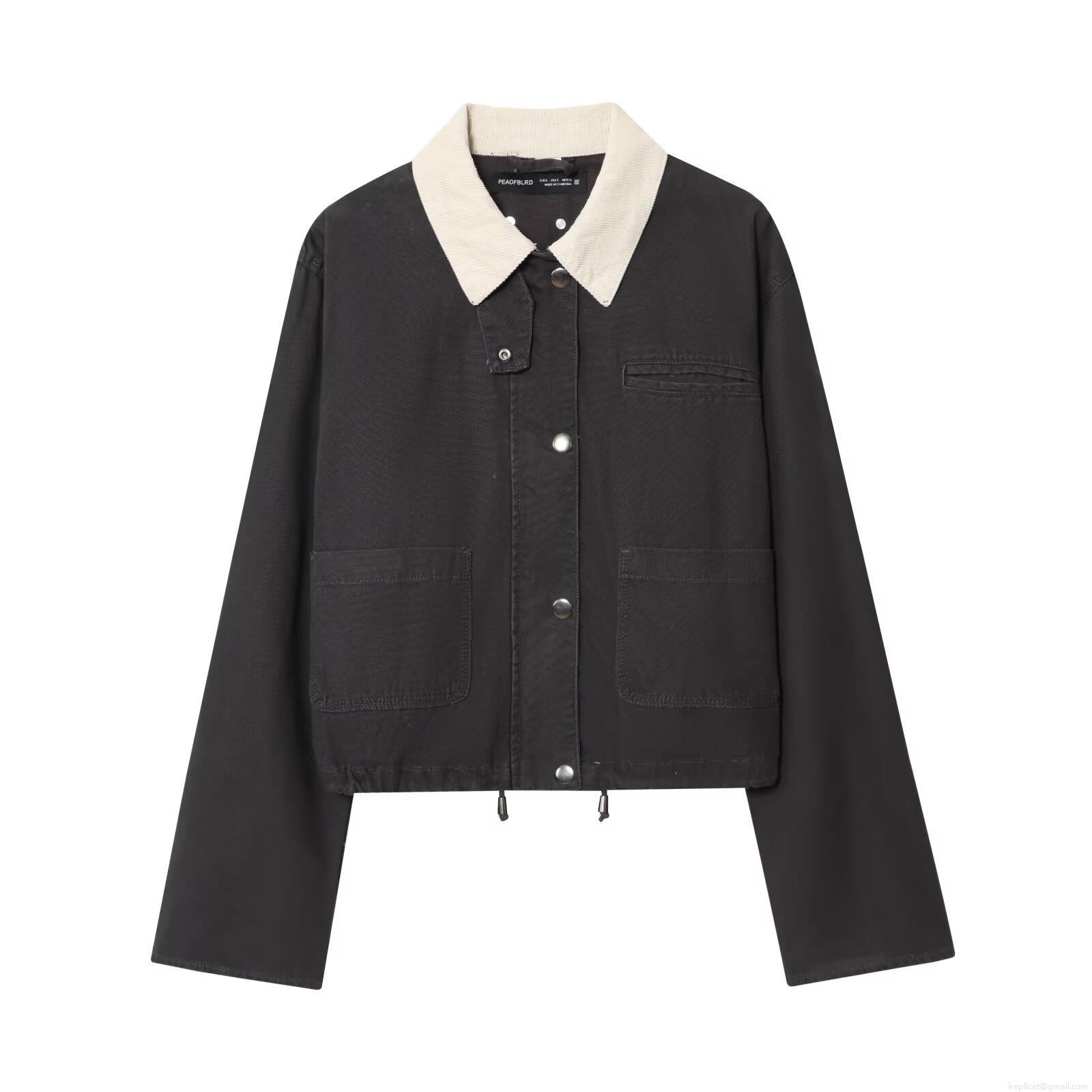 Women's American Vintage Workwear Short Jacket With Corduroy Collar Cotton Canvas Splicing Button Down Outwear Coat For Women Streetwear