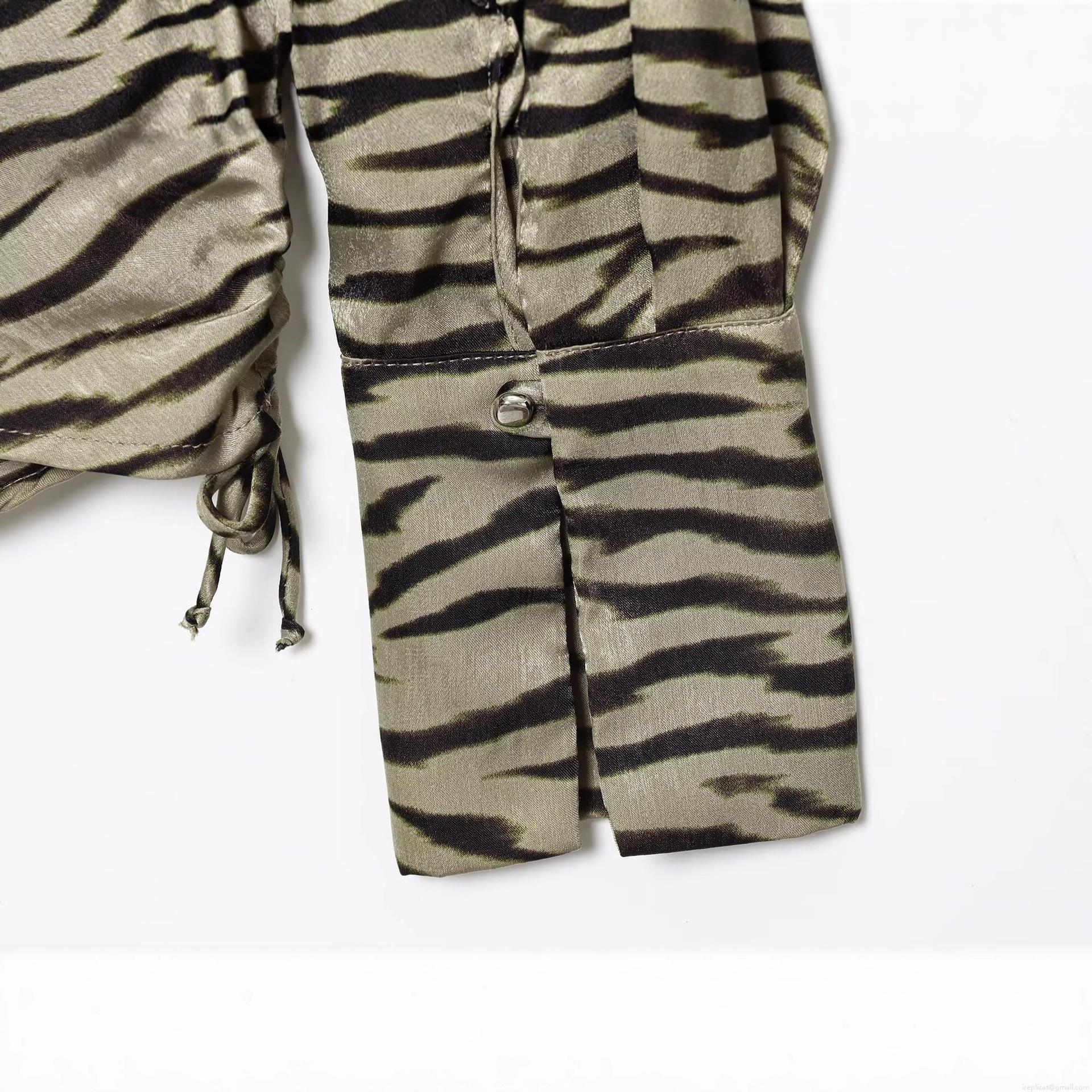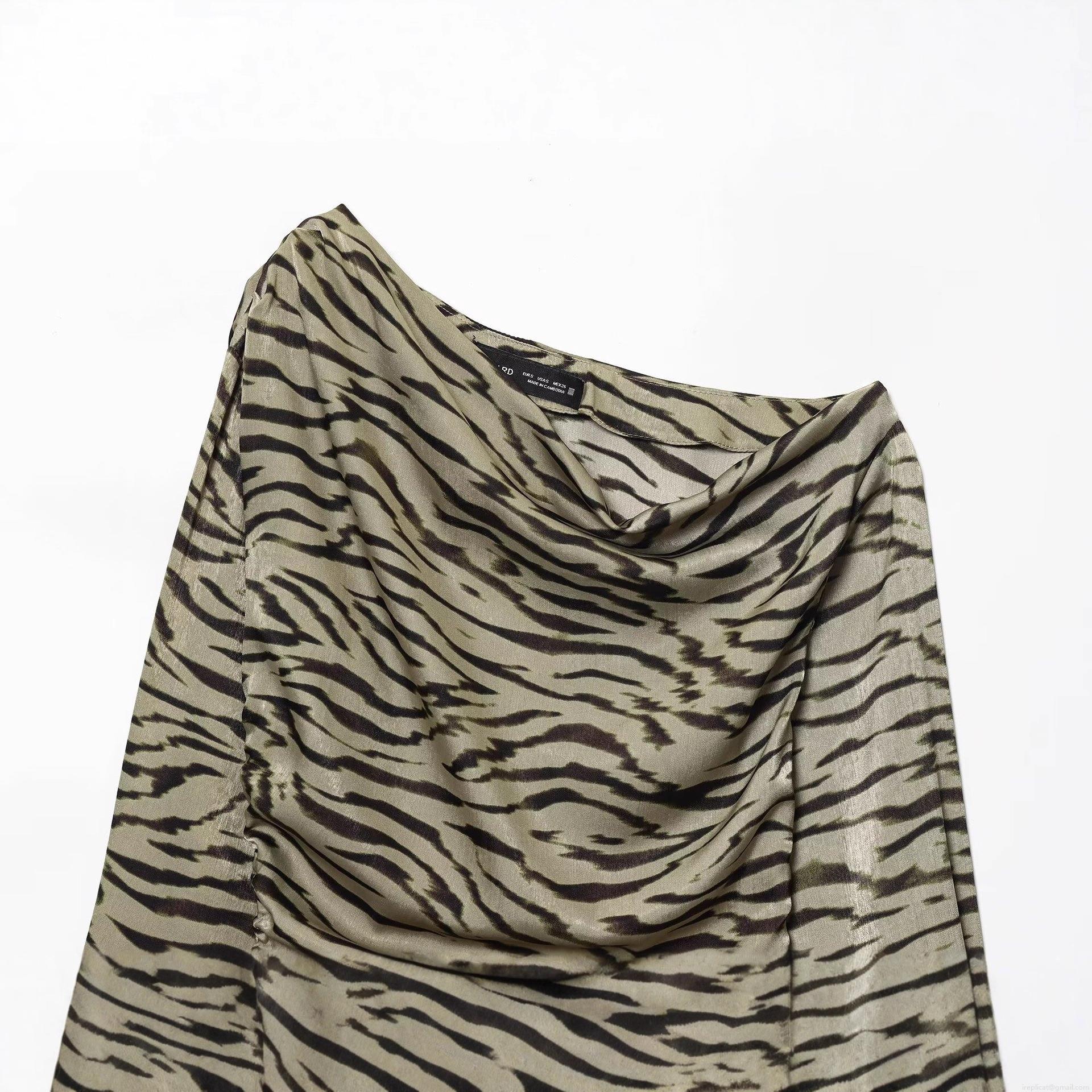 Zebra, Pleats, Tiger Stripes, Metal Buckle, Sloping Shoulders, Animal Prints, Side Drawstring
