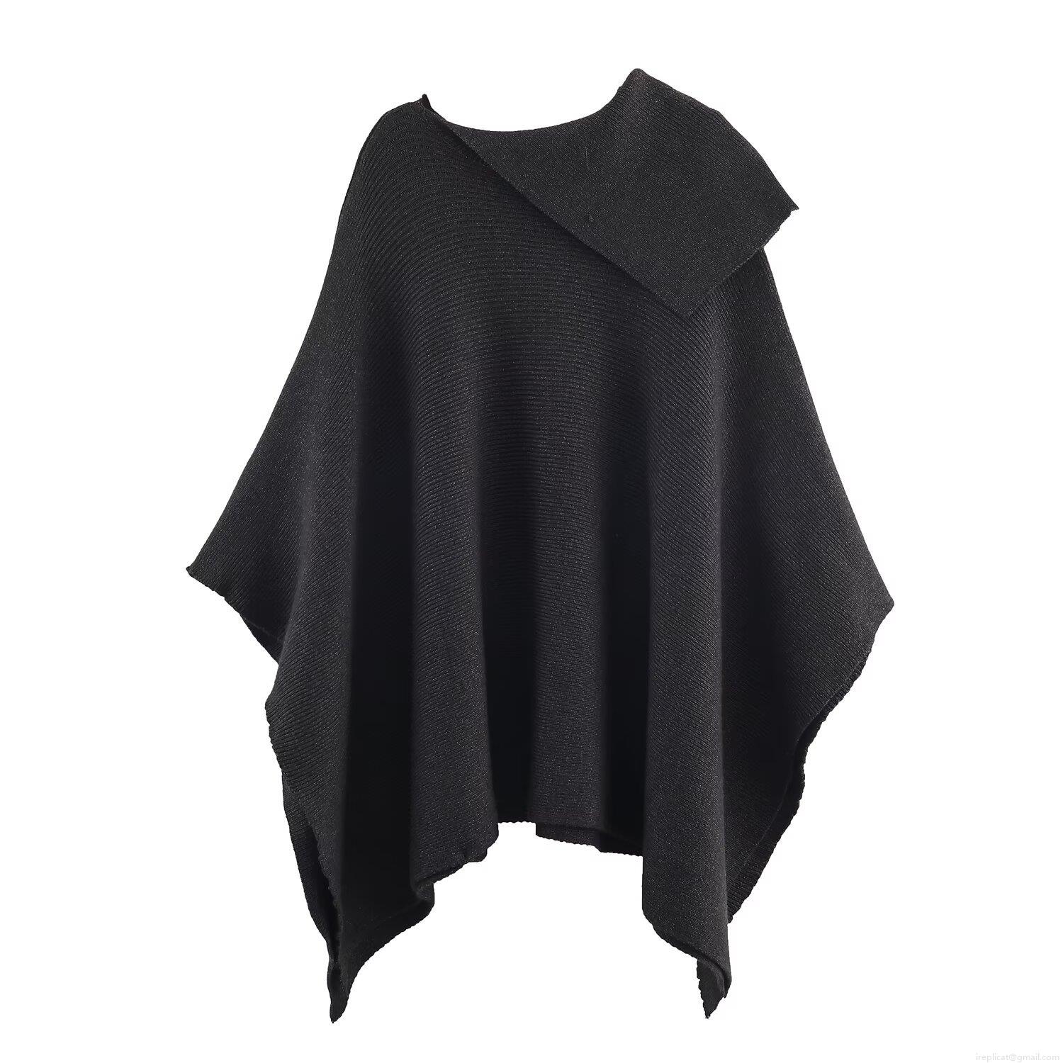 Women's Asymmetric Knitted Cape Cloak Coat Polyester Ribbed Knit Poncho Shawl Solid Color Batwing Sleeve Casual Outerwear For Fall Winter Fashion Streetwear