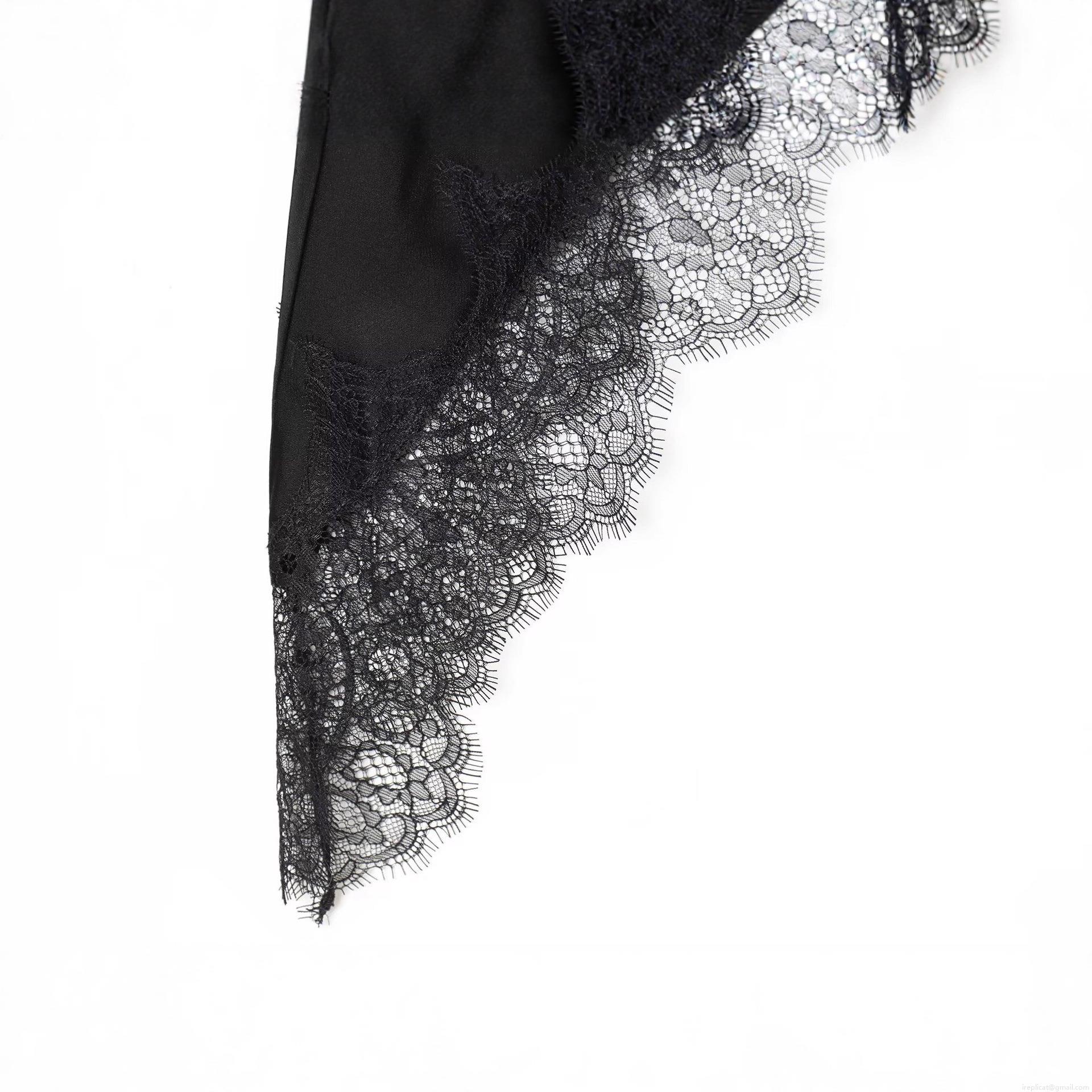 Solid Color, Lace Patchwork, Asymmetrical Design, Satin Texture, Eyelash Lace
