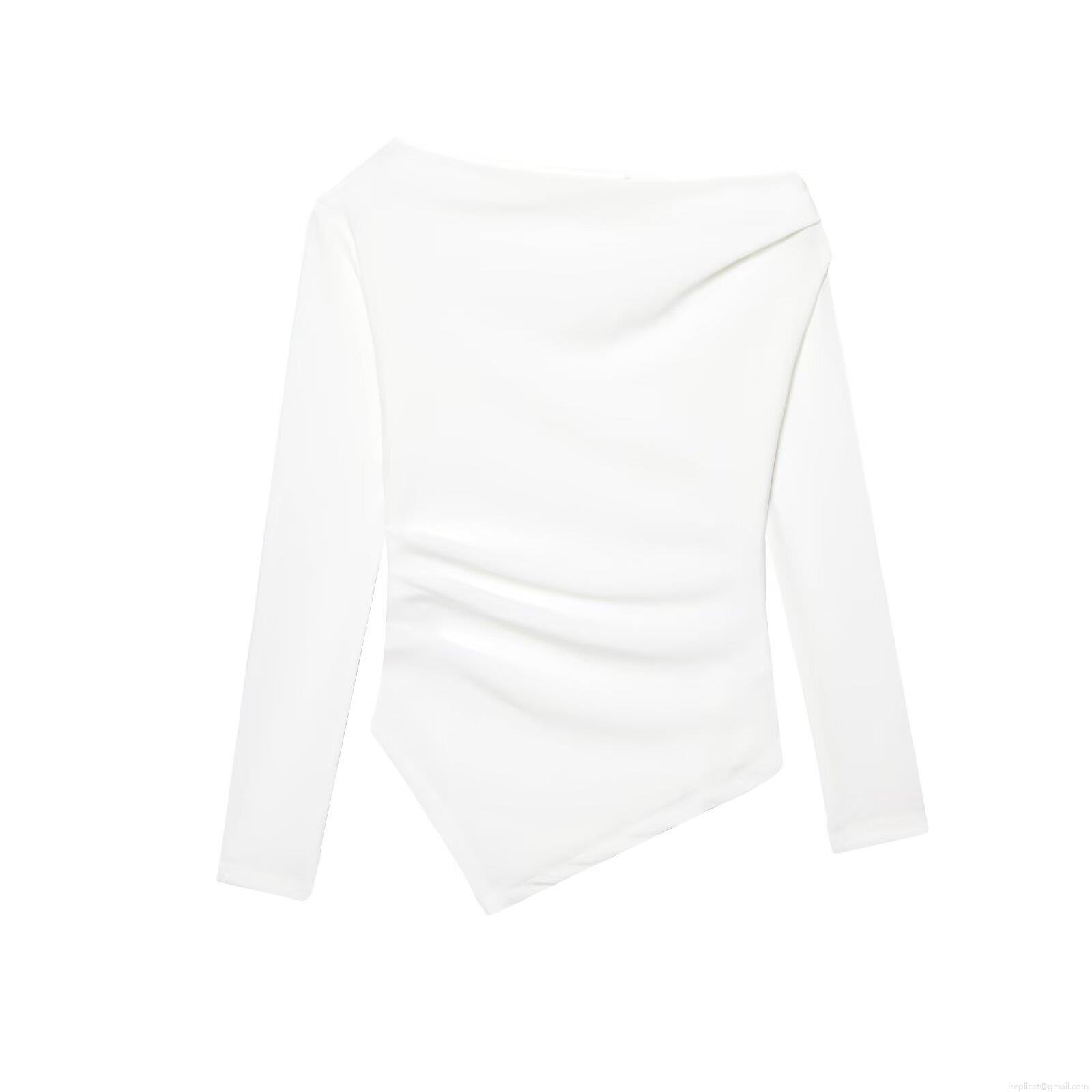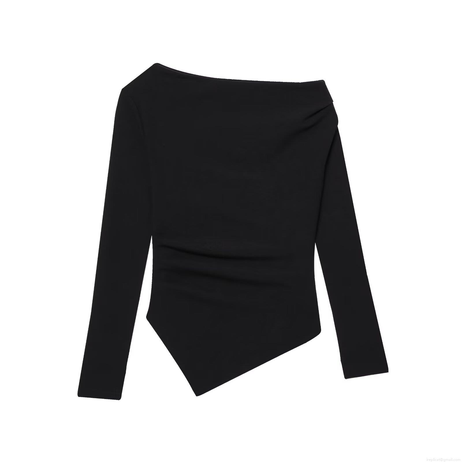 Women's Asymmetric Neck Ruched Long Sleeve T-Shirt Solid Color Slim Fit Stretchy Polyester Top Streetwear Casual Blouse For Women Autumn Spring