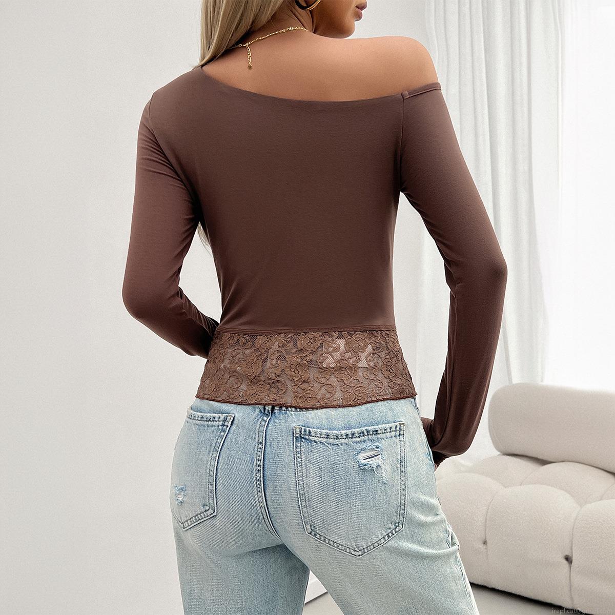 Solid Color, Asymmetric, Off-shoulder, Sloping Shoulders, Lace Patchwork