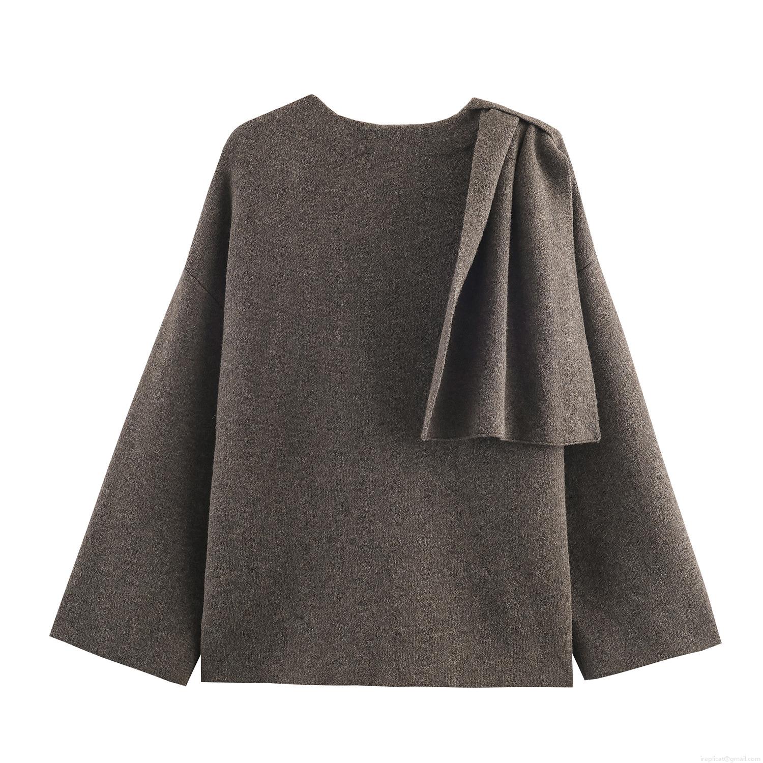 Women's Asymmetric Scarf Collar Knit Sweater Autumn Winter Oversized Solid Color Polyester Pullover Streetwear Casual Soft Long Sleeve Knitwear