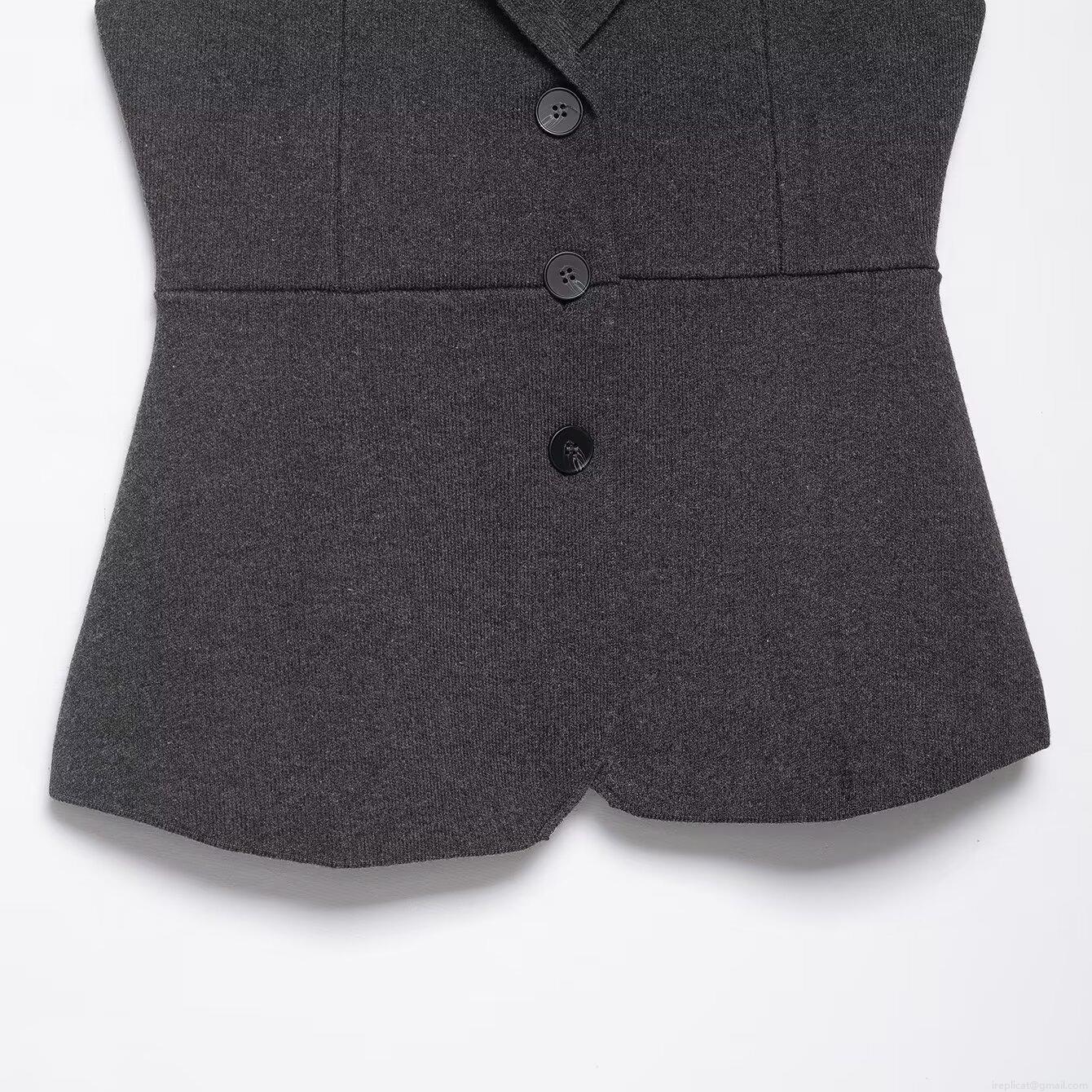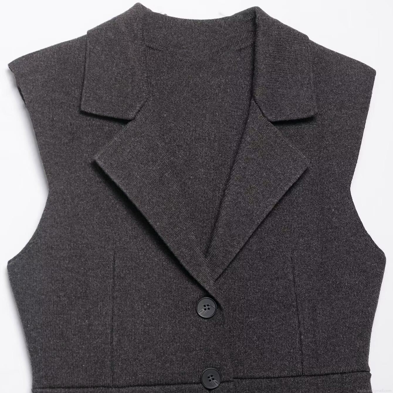 Women's Autumn Slim Fit Knit Suit Vest Elegant V-Neck Sleeveless Button Front Polyester Solid Color Grey Waistcoat For Commuting Daily Wear