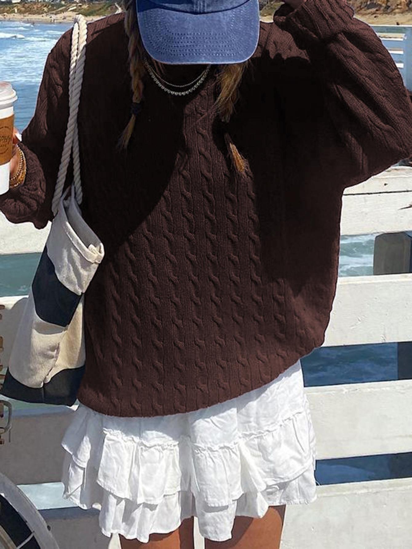 Women's Cable Knit Sweater Viscose Blend Round Neck Long Sleeve Pullover Casual Vacation Loose Fit Warm Winter Jumper Top