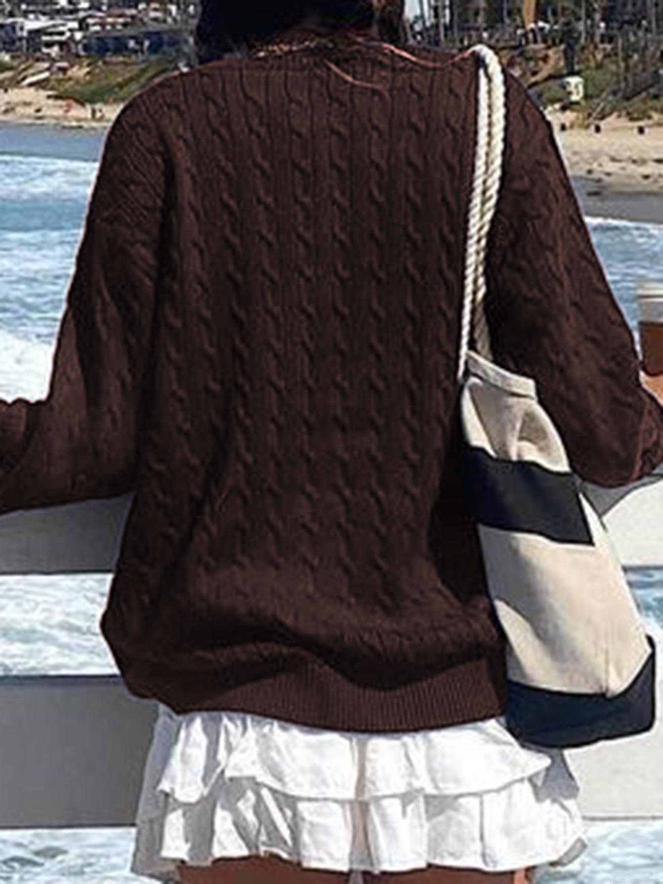 Women's Casual V-Neck Cable Knit Sweater Solid Color Long Sleeve...