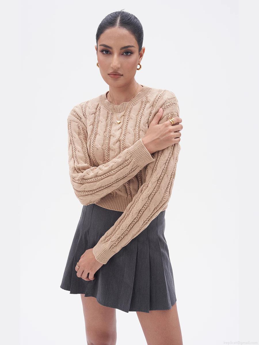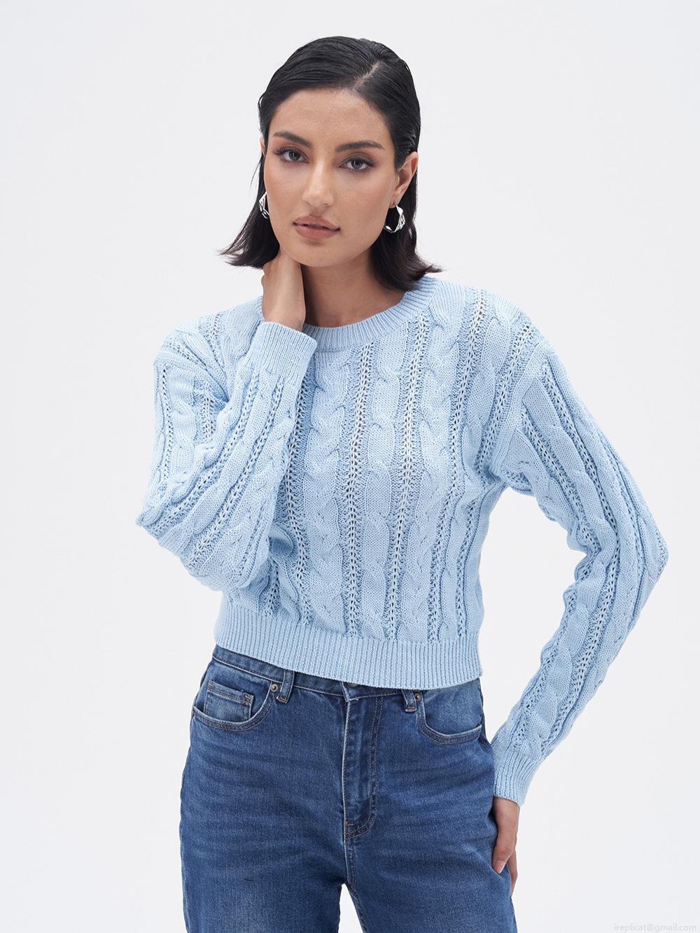Women's Cable Knit Sweater Viscose Nylon PPT Blend Long Sleeve Crew Neck Cropped Jumper Solid Color Knitted Top For Daily Casual Preppy Style Autumn Winter