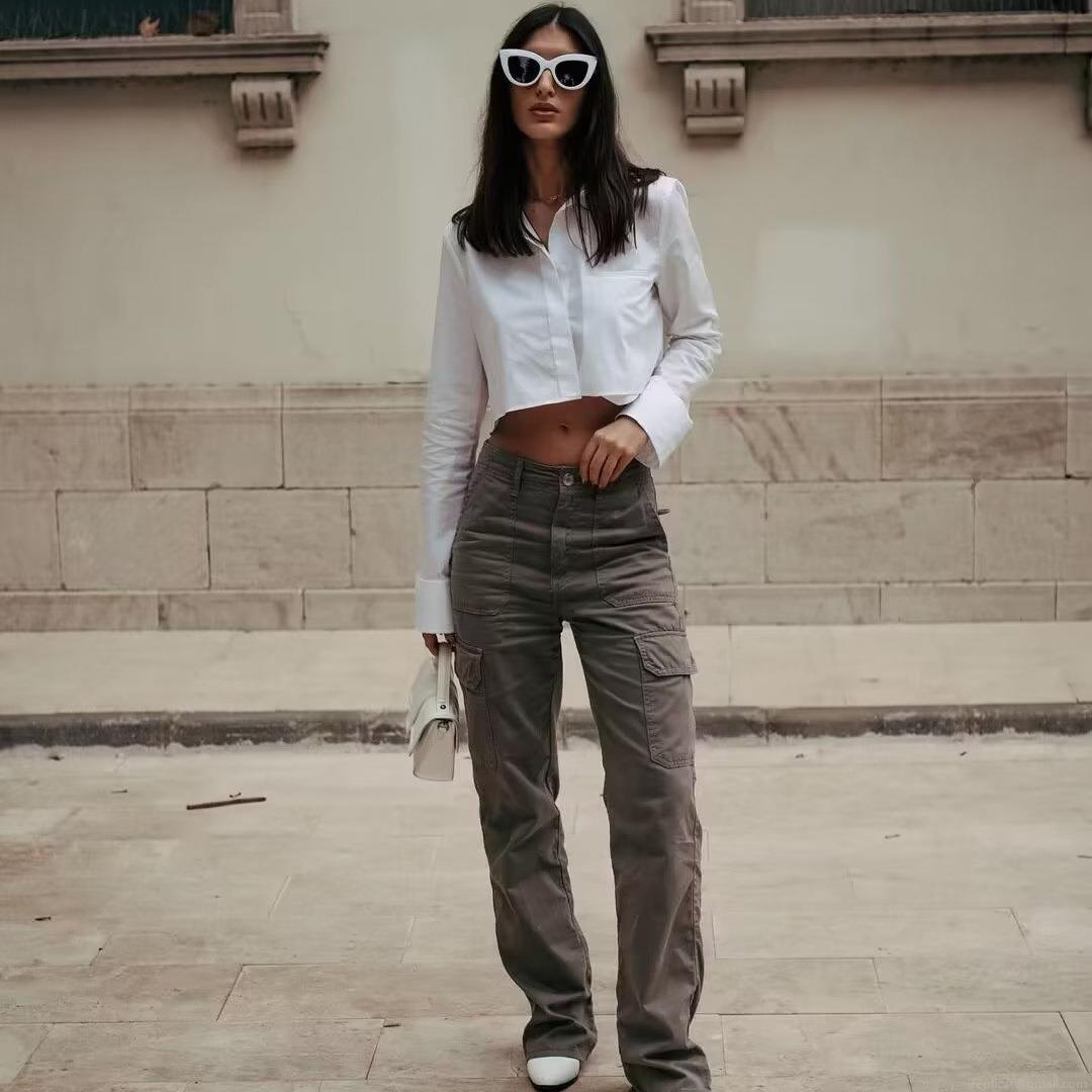 Women's Cargo Pants 100% Cotton Twill Multi-Pocket Straight Leg Trousers Y2K Streetwear Casual Outdoor Techwear Fashion Pants for Women