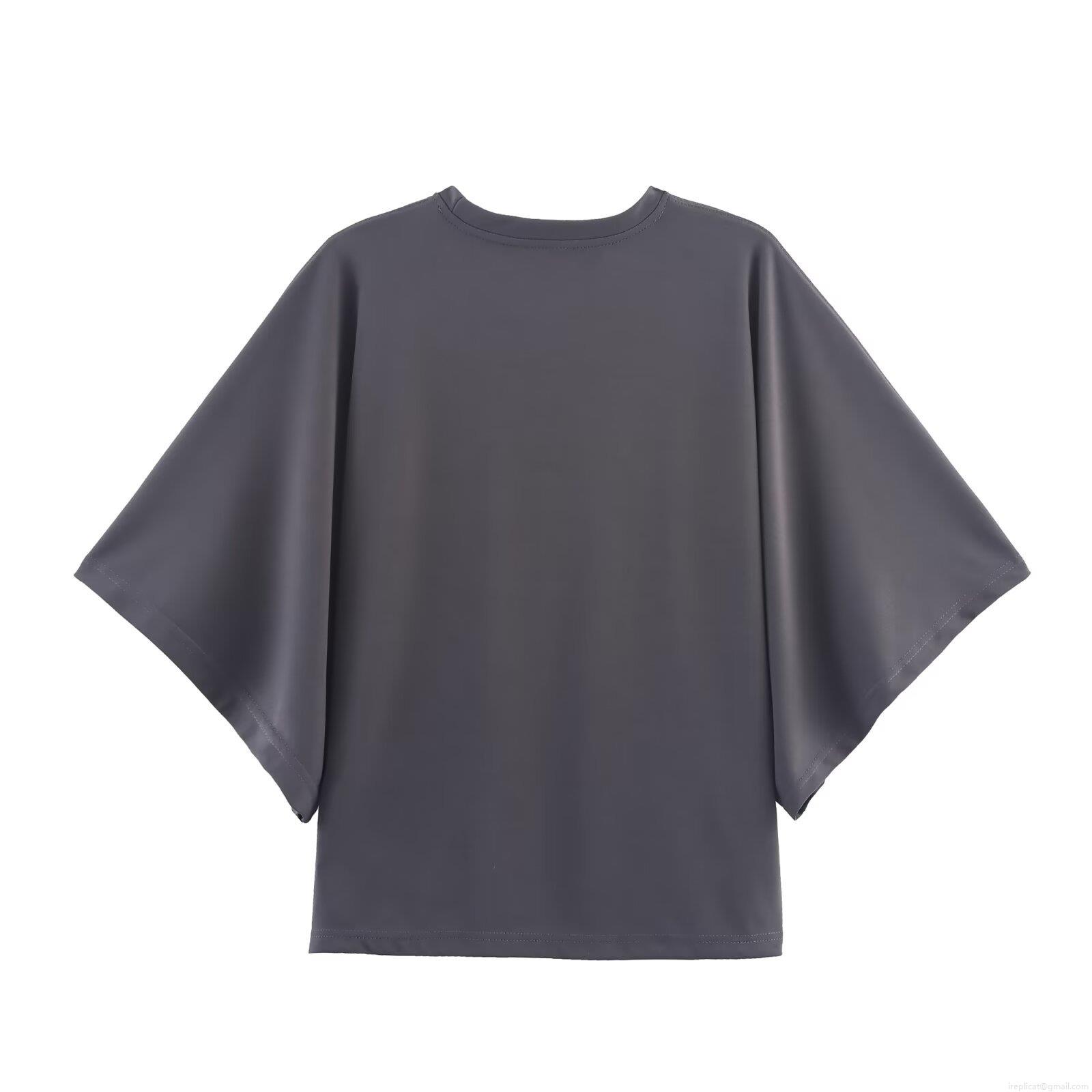 Women's Casual Batwing Sleeve T-Shirt Solid Color Loose Fit Crew Neck Summer Top For Daily Office Minimalist Cotton Blend Short Sleeve