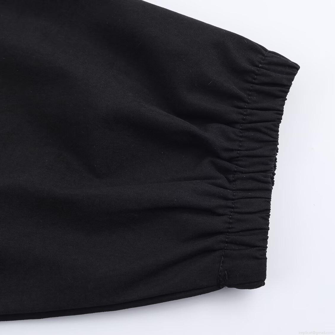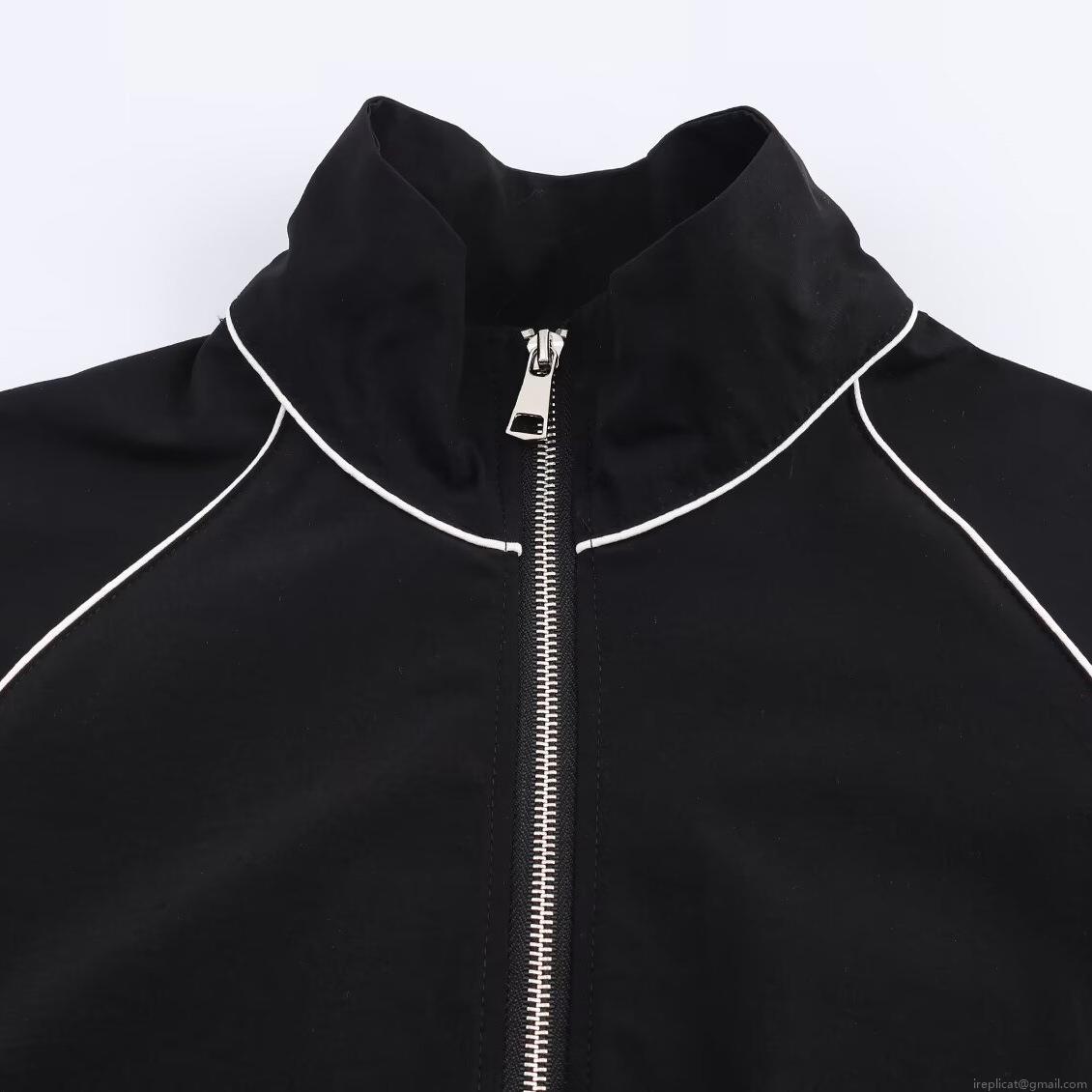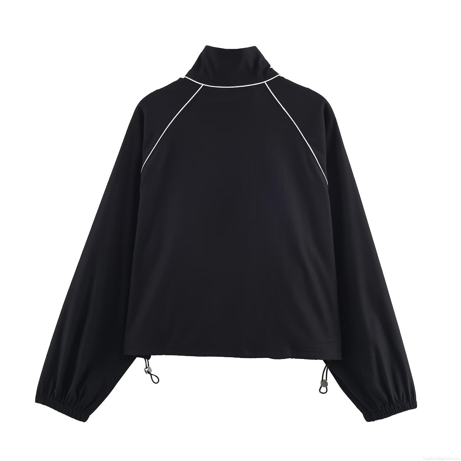 Women's Casual Black Nylon Puffy Jacket Stand Collar Zip Up Lightweight Sporty Windbreaker Coat With Contrast Trim And Drawstring Hem