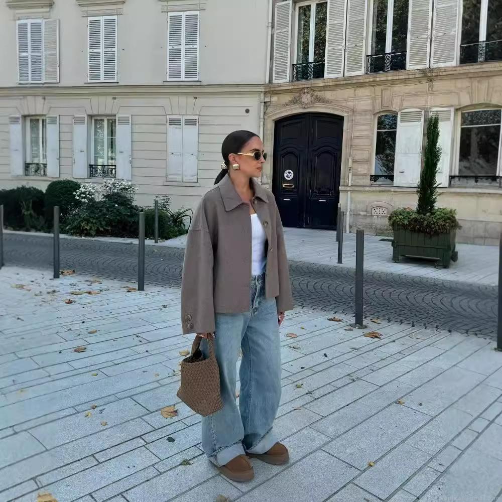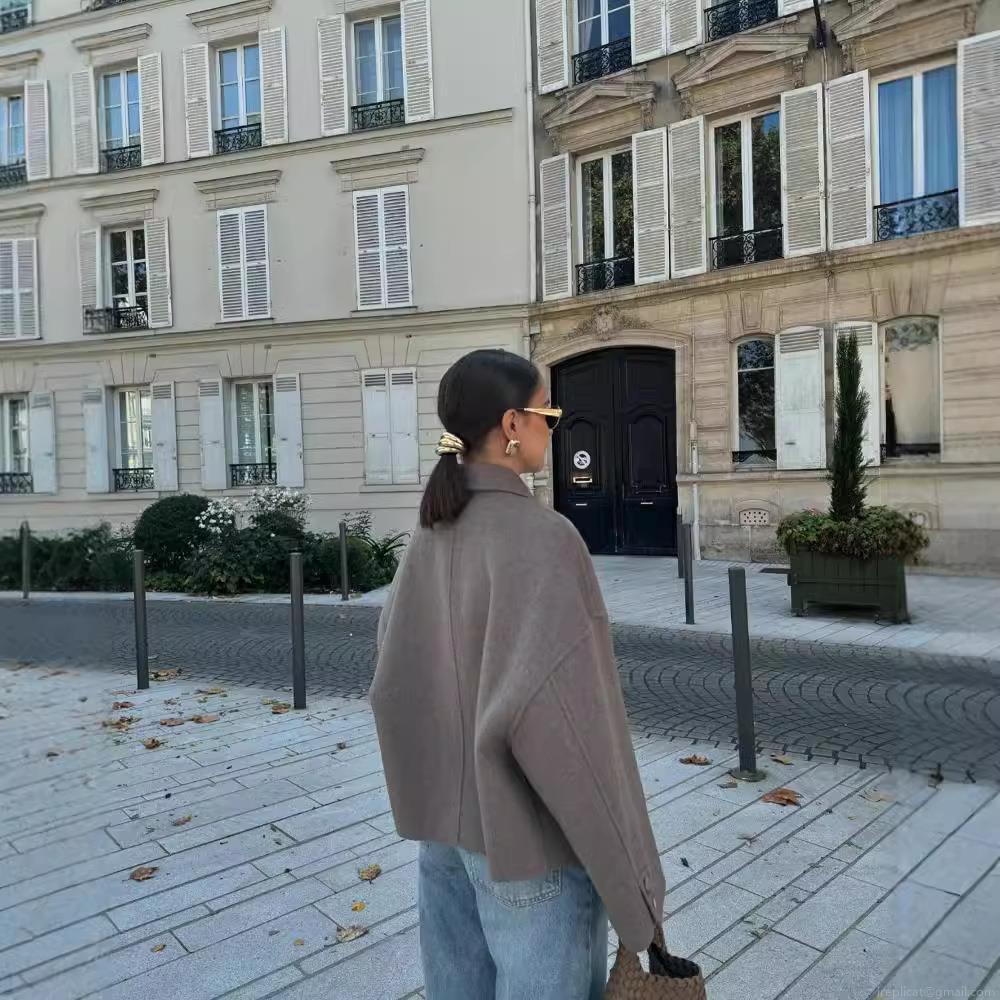 Women's Casual British Style Short Woolen Jacket Loose Lapel Long Sleeve Single Breasted Coat With Pockets For Autumn Winter