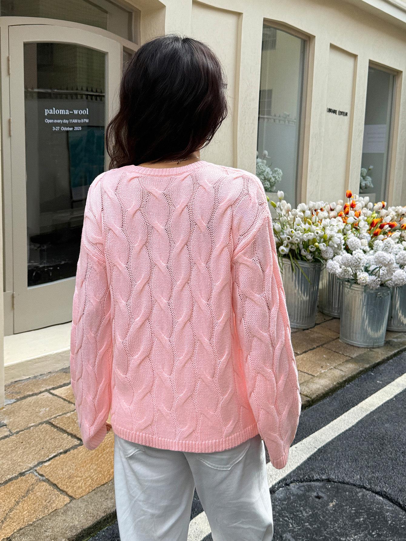 Women's Casual Cable Knit Sweater 100% Acrylic Pullover Loose Fit Crew Neck Long Sleeve Solid Color Warm Winter Knitwear Top