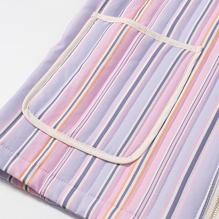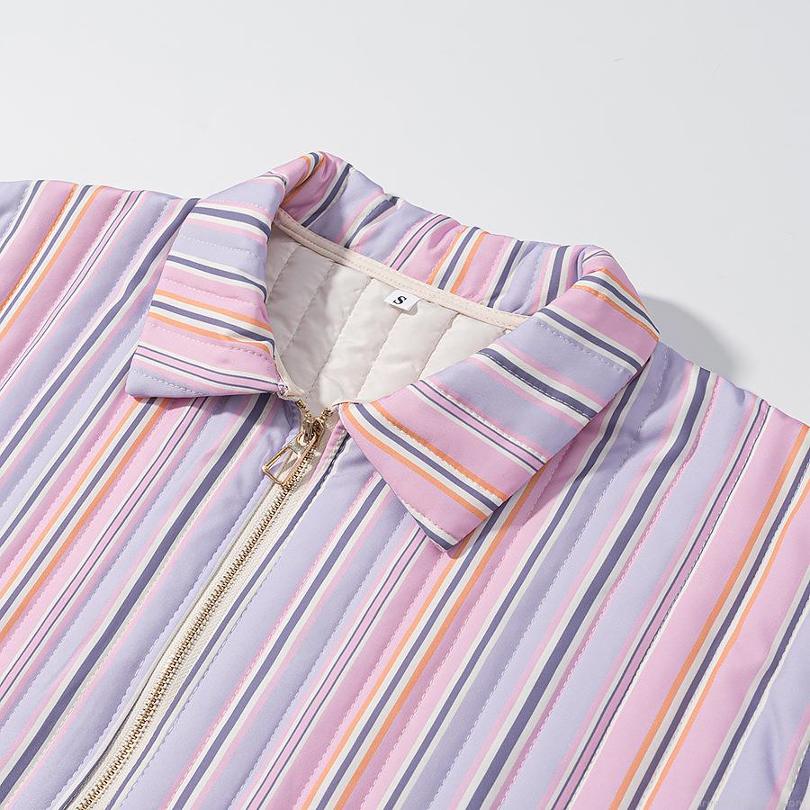 Women's Casual Colorful Striped Quilted Jacket Padded Puffer Coat With Gold Zipper Pockets Polyester Spandex Blend Loose Fit Autumn Winter Outerwear For Women