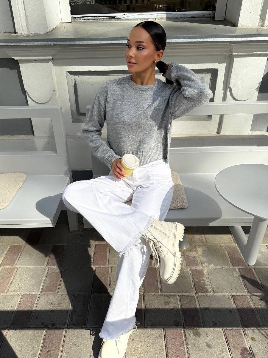 Women's Autumn Winter Loose Knitted Sweater 80% Cotton Blend Crew...