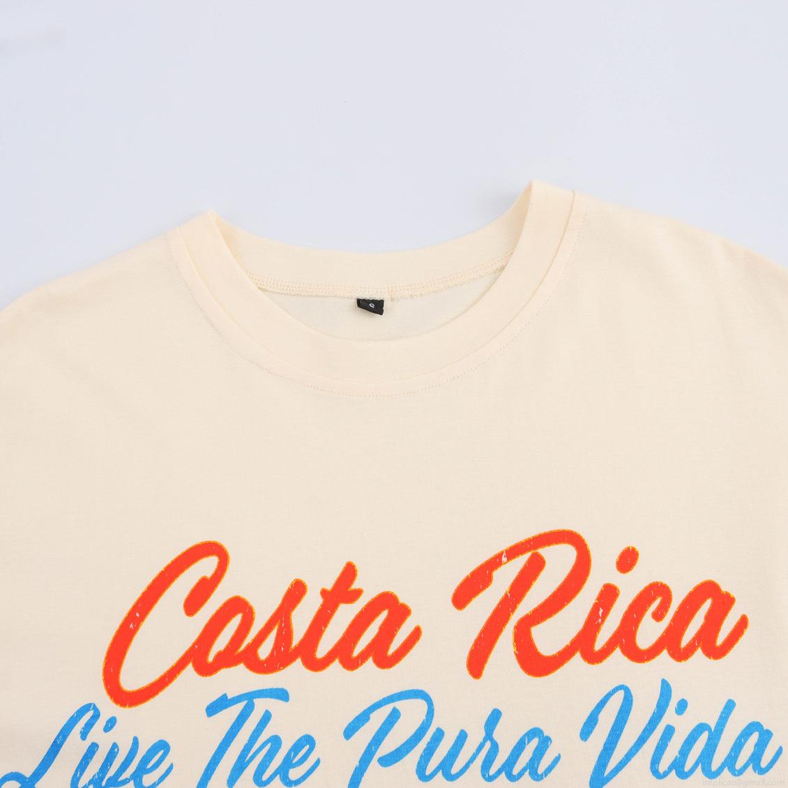 Women's Casual Cotton Blend Short Sleeve T-Shirt Loose Fit Round Neck Graphic Printed Top Costa Rica Themed Pura Vida Streetwear Oversized Tee For Summer Daily Travel