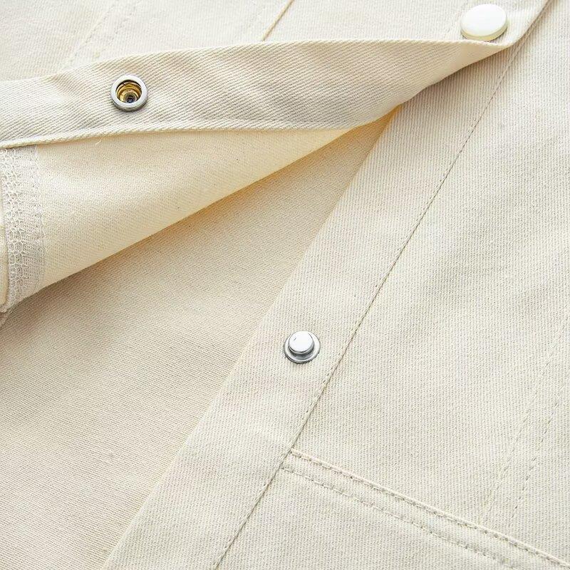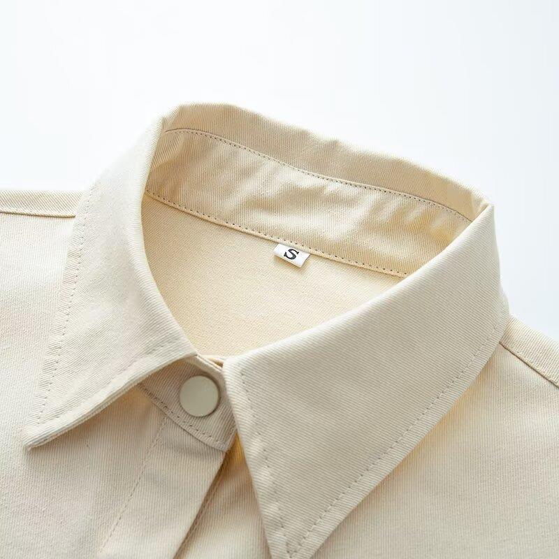 Women's Casual Cotton Blend Solid Color Button Up Jacket Long Sleeve Loose Workwear Shacket With Pockets Minimalist Outerwear For Women