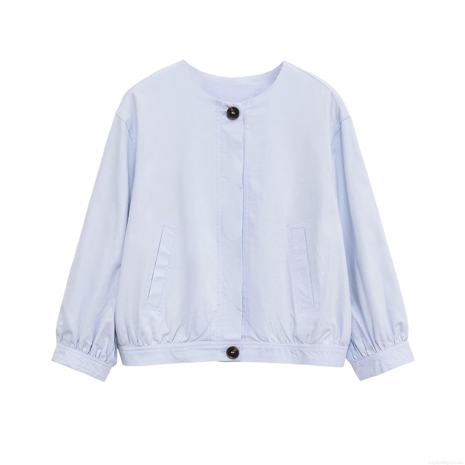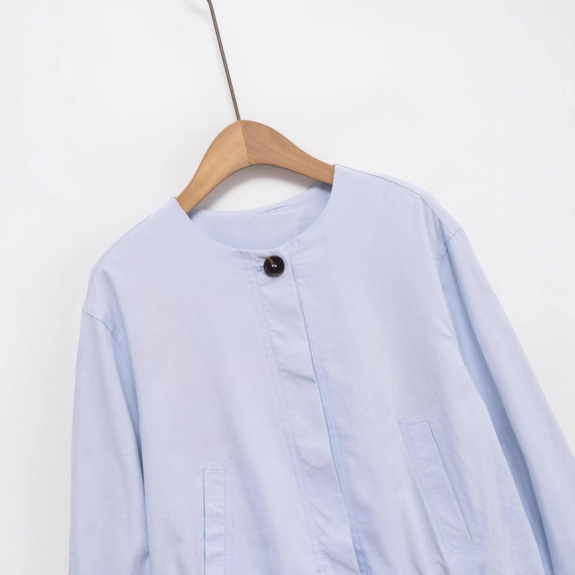 Women's Casual Cotton Linen Blend Light Jacket Fashion Boxy Loose Windbreaker Single Breasted Long Sleeve Round Neck Short Coat For Daily Travel Spring Autumn