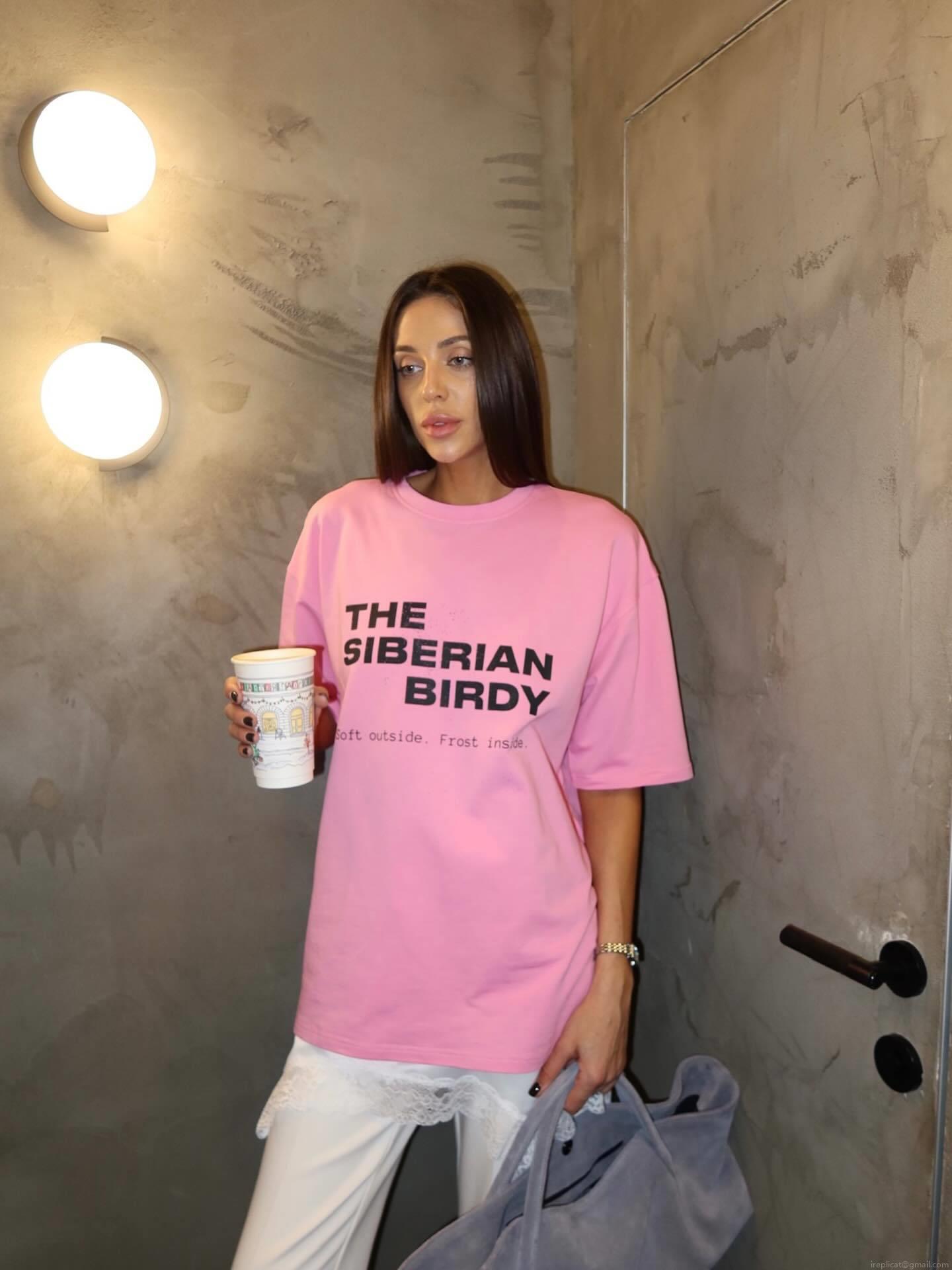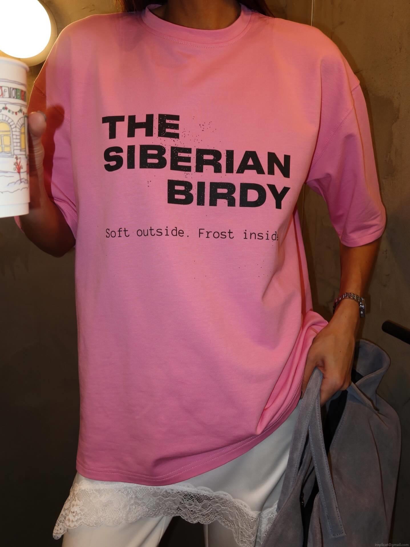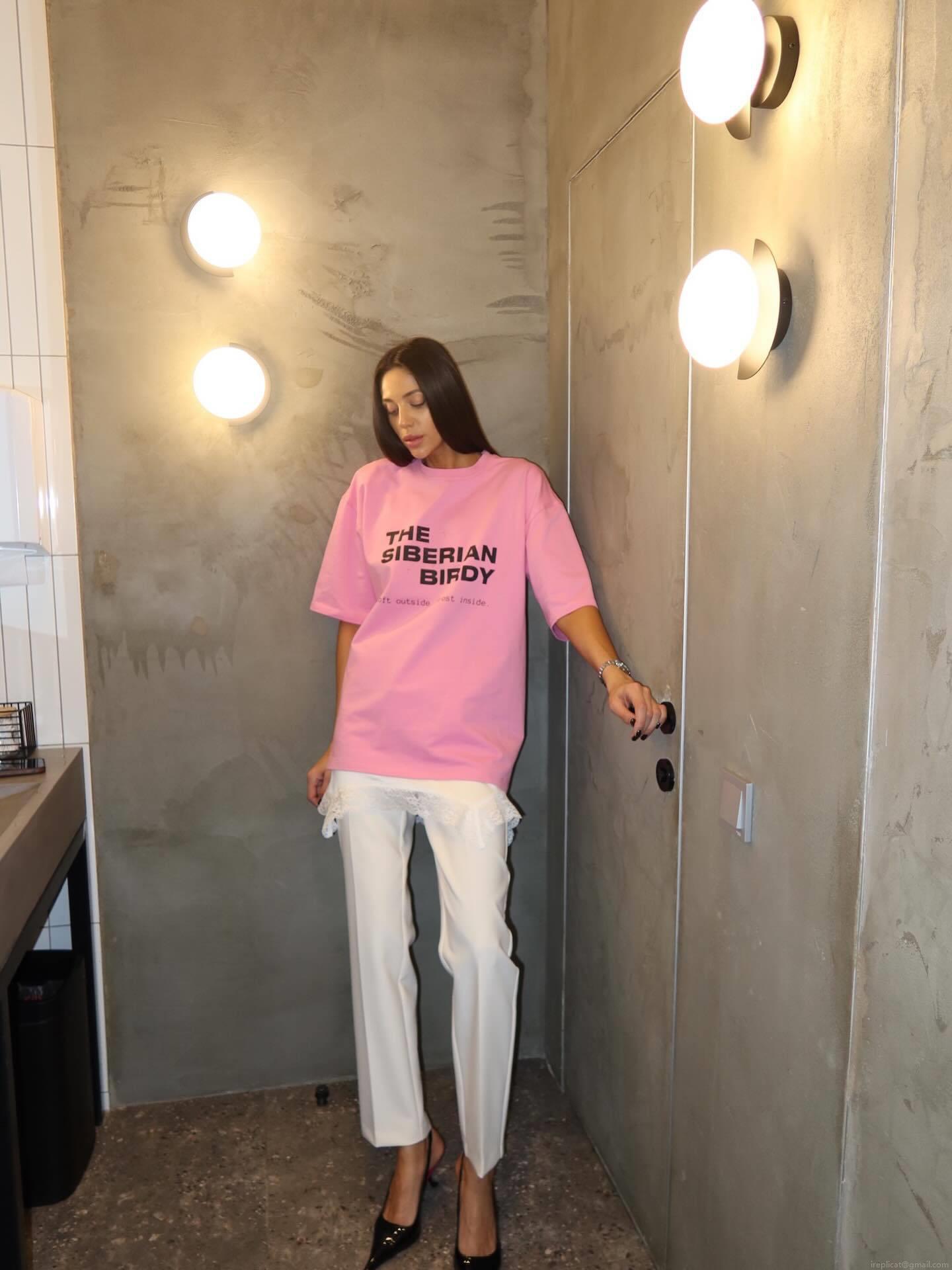 Women's Casual Cotton Pink T-Shirt Oversized Short Sleeve Round Neck Letter Print Top Streetwear Summer Fashion Tee